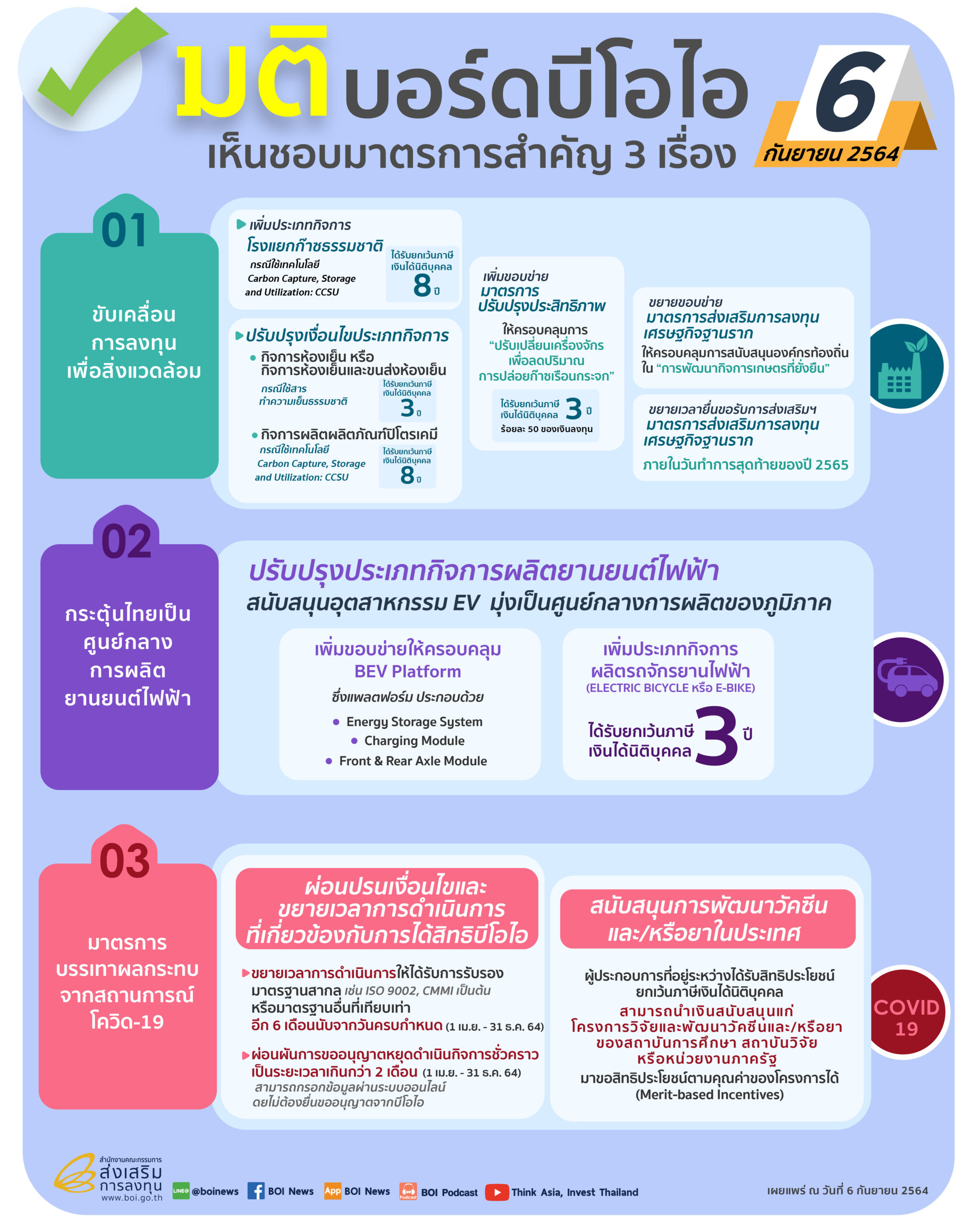 บอร์ดบีโอไอ ออกมาตรการบรรเทาผลกระทบจากโควิด-19 พร้อมสนับสนุนการพัฒนาวัคซีน ยาในประเทศ ลุย ส่งเสริมยานยนต์ไฟฟ้า มุ่งสู่ศูนย์กลางการผลิตภูมิภาค