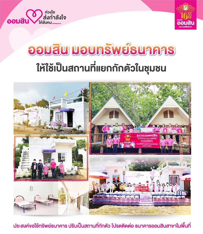 ออมสิน มอบทรัพย์ธนาคาร ให้ใช้เป็นสถานที่แยกกักตัวในชุมชน อีกภารกิจช่วยเหลือสังคมในภาวะวิกฤตโควิด-19
