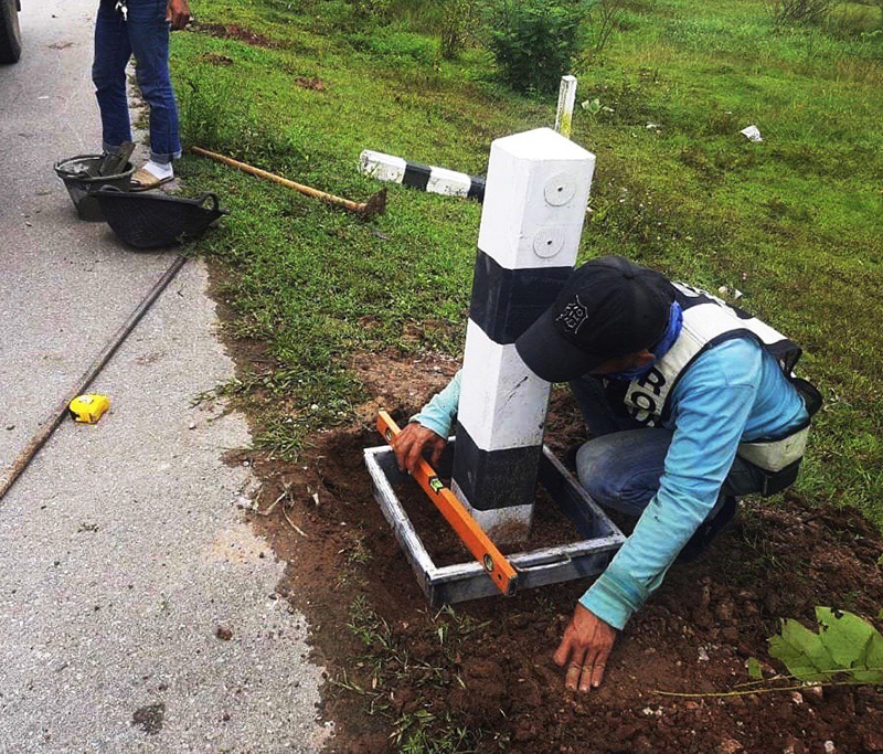 กรมทางหลวงชนบท ติดตั้งเสาหลักนำทางยางธรรมชาติ อ.แม่สอด ป้องกันและลดความรุนแรงในการเกิดอุบัติเหตุ