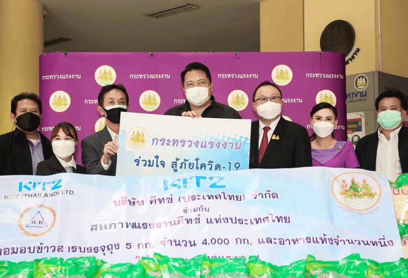 อย่างไรก็ตาม วันนี้ กระทรวงแรงงาน ขอขอบคุณภาคเอกชน ทั้ง 3 คณะ อย่าง บริษัท คิทซ์ (ประเทศไทย) จำกัด และสหภาพแรงงานคิทซ์แห่งประเทศไทย ที่มอบข้าวสารและอาหารแห้ง บริษัท แวนด้าแพค จำกัด ที่มอบกล่องและถ้วยใส่อาหารพร้อมฝาปิด และบริษัท เอดับเบิ้ลยู (ไทยแลนด์) จำกัด ที่มอบข้าวสาร เพื่อให้กระทรวงแรงงานนำไปช่วยเหลือพี่น้องผู้ใช้แรงงานที่ได้รับผลกระทบจากโควิด-19 เป็นการช่วยแบ่งเบาภาระและเป็นการสร้างขวัญกำลังใจในการต่อสู้กับการแพร่ระบาดของโควิด-19 ให้ก้าวข้ามสถานการณ์นี้ไปด้วยกัน”