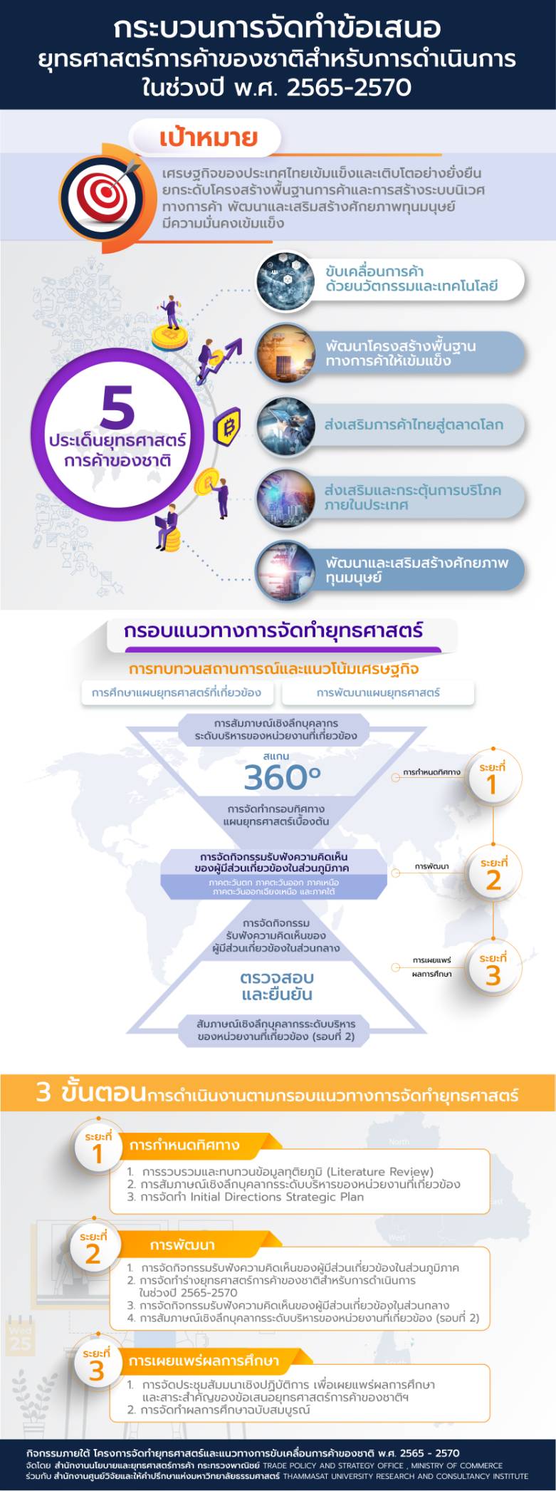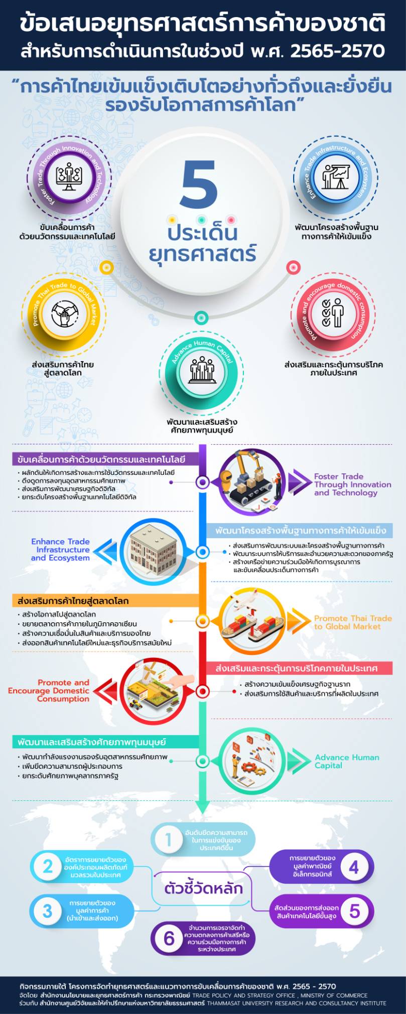 สนค. ร่วมกับ ม.ธรรมศาสตร์ เผยแพร่ข้อเสนอ 5 ยุทธศาสตร์ 9 แนวทางขับเคลื่อนการค้าของชาติ หลังระดมความคิดเห็นทุกภาคส่วน