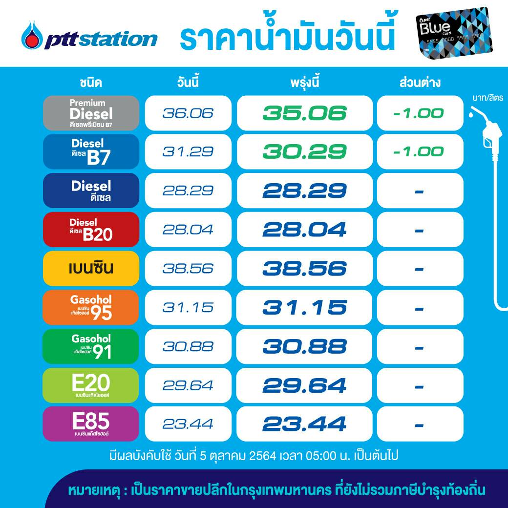 และเบนซิน เฉพาะปตท. อยู่ที่ลิตรละ 38.56 บาท