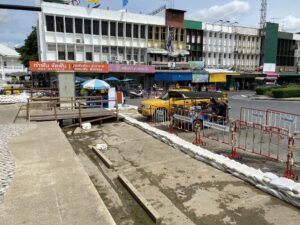 เจ้าหน้าที่ จัดเตรียมกระสอบทรายบริเวณท่าน้ำนนท์ เตรียมพร้อมรับมือน้ำเจ้าพระยา ขึ้นสูงสุดวันนี้ 20.30น.