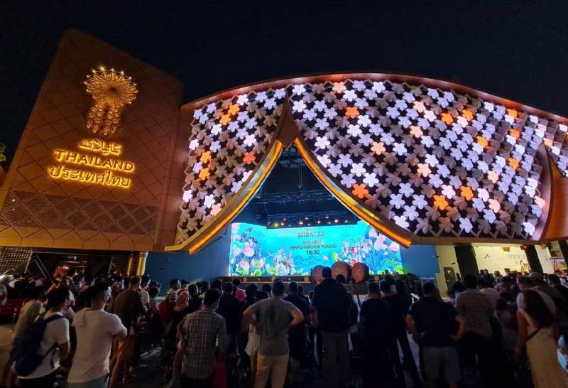 อาคารแสดงประเทศไทย “Thailand Pavilion” ที่จัดโดยกระทรวงดิจิทัลเพื่อเศรษฐกิจและสังคม โดยสำนักงานส่งเสริมเศรษฐกิจดิจิทัล หรือ ดีป้า ภายในงาน World Expo 2020 Dubai ณ เมืองดูไบ สหรัฐอาหรับเอมิเรตส์ มีประเทศสมาชิกเข้าร่วมงานทั้งหมด 192 ประเทศ ซึ่งจัดขึ้นระหว่างวันที่ 1 ตุลาคม 2564 – 31 มีนาคม 2565 เปิดเข้าชมอย่างเป็นทางการไปเพียง 17 วัน หรือ 2 สัปดาห์กว่าเท่านั้น พบสถิติผู้เข้าชมอาคารแสดงประเทศไทยพุ่งทะลุ 1 แสนคนแล้ว