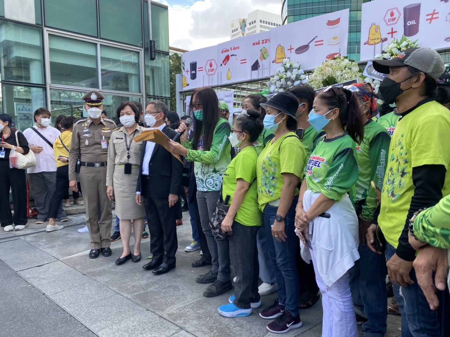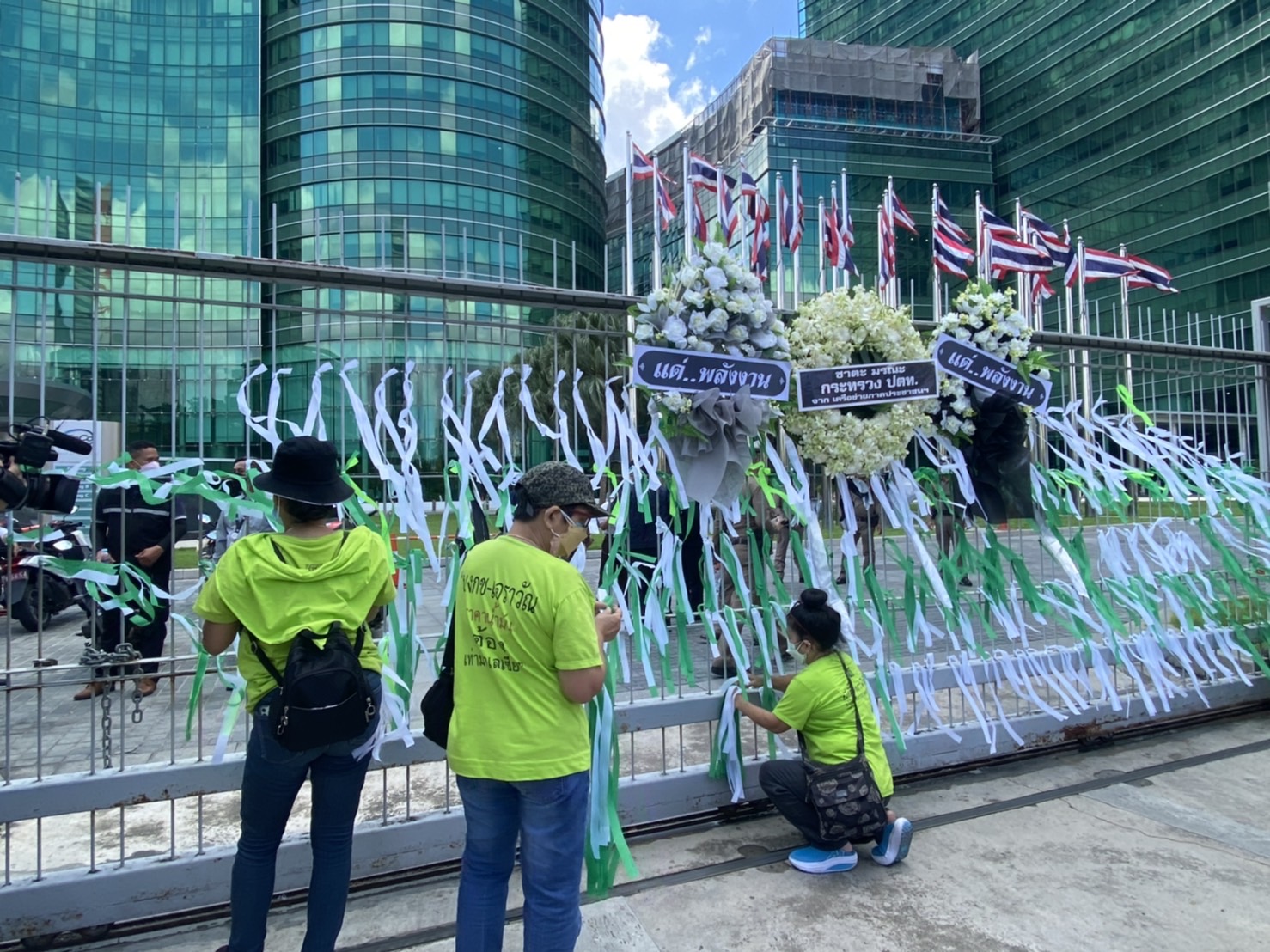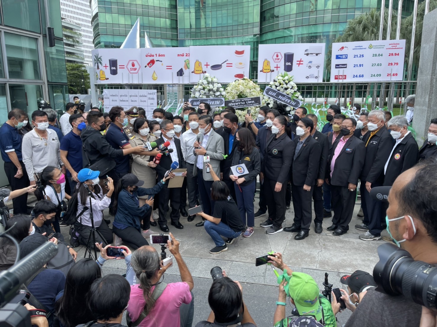 ส่วนบรรยากาศที่หน้ากระทรวงพลังงาน รถบรรทุกแต่ละเส้นทางได้ทยอยนำรถเข้ามาจอดหน้ากระทรวง พร้อมกับน้ำพวงหรีดไปติดไว้ที่ประตูทางเข้า เพื่อเป็นการแสดงออกเชิงสัญลักษณ์ ให้กับรัฐมนตรีว่าการกระทรวงพลังงาน ขณะเดียวกันนอกจากกลุ่มรถบรรทุกที่มาชุมนุมเรียกร้องในวันนี้แล้ว ก็ยังมีกลุ่มภาคประชาชน รถ 2 แถวในเขตปริมลฑณและกรุงเทพมาร่วมชุมนุมเรียกร้องด้วย