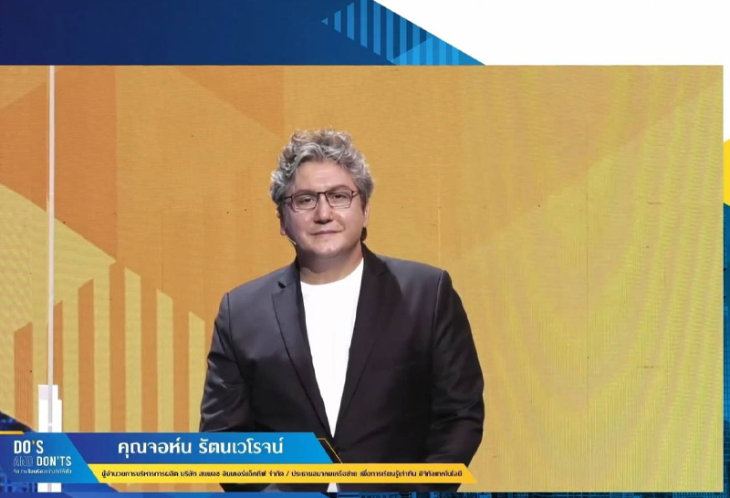 นายจอห์น รัตนเวโรจน์ ผู้อำนวยการบริหารการผลิต บริษัท สแพลช อินเตอร์แอ็คทีฟ จำกัด ประธานสมาคมเครือข่าย เพื่อการเรียนรู้เท่าทัน ดิจิทัลเทคโนโลยี กล่าวถึงการพัฒนานวัตกรรมใหม่ ๆ ว่าจะต้องคิดถึงเนื้อหาก่อน พร้อมกับยกตัวอย่าง หูฟังที่มีความสามารถพิเศษในการรับฟัง นวัตกรรมเพื่อสิ่งแวดล้อมที่ไม่ก่อให้เกิดมลพิษทางเสียง ของโครงการ Sounds of Earth (SOE) ที่ทางบริษัทพัฒนาขึ้น เพื่อตอบโจทย์การจัดงานที่เป็นมิตรต่อสิ่งแวดล้อม ซึ่งเอื้อต่อผู้จัดงานที่ต้องการจัดกิจกรรม เช่น คอนเสิร์ตเล็กๆ ในพื้นที่อาคารโรงแรม หรือ บริเวณชายหาด โดยไม่ก่อให้เกิดเสียงรบกวนผู้อื่น และยังสามารถดูแลจัดการระยะห่างทางสังคมในการร่วมกิจกรรมได้อีกด้วย