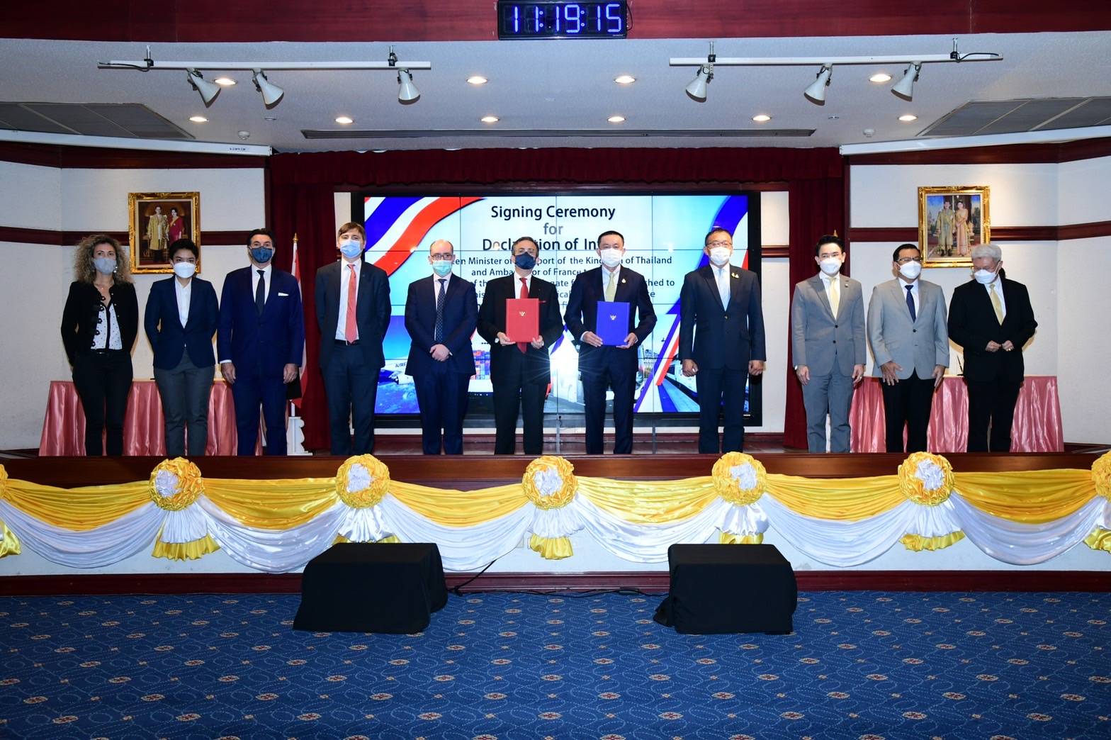 นายศักดิ์สยาม ชิดชอบ รัฐมนตรีว่าการกระทรวงคมนาคม และนายตีแยรี มาตู (H.E. Mr. Thierry Mathou) เอกอัครราชทูตสาธารณรัฐฝรั่งเศสประจำประเทศไทย เป็นประธานในพิธีลงนามปฏิญญาแสดงเจตจำนงระหว่างรัฐมนตรีว่าการกระทรวงคมนาคมแห่งราชอาณาจักรไทยและเอกอัครราชทูตสาธารณรัฐฝรั่งเศสประจำประเทศไทยในนามของรัฐมนตรีช่วยว่าการกระทรวงการเปลี่ยนผ่านทางนิเวศวิทยา กำกับดูแลการคมนาคมแห่งสาธารณรัฐฝรั่งเศส ว่าด้วยความร่วมมือในสาขาคมนาคมขนส่ง