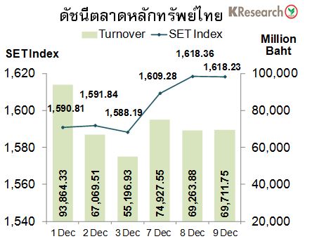 ส่วนการเคลื่อนไหวของดัชนีหุ้นไทยสัปดาห์หน้า บริษัทหลักทรัพย์กสิกรไทย มองว่า ดัชนีหุ้นไทยมีแนวรับที่ 1,600 และ 1,580 จุด ขณะที่แนวต้านอยู่ที่ 1,625 และ 1,640 จุด ตามลำดับ โดยปัจจัยสำคัญที่ต้องติดตาม ได้แก่ การประชุมเฟด (14-15 ธ.ค.) สถานการณ์โควิด-19 และทิศทางเงินลงทุนของนักลงทุนต่างชาติ
