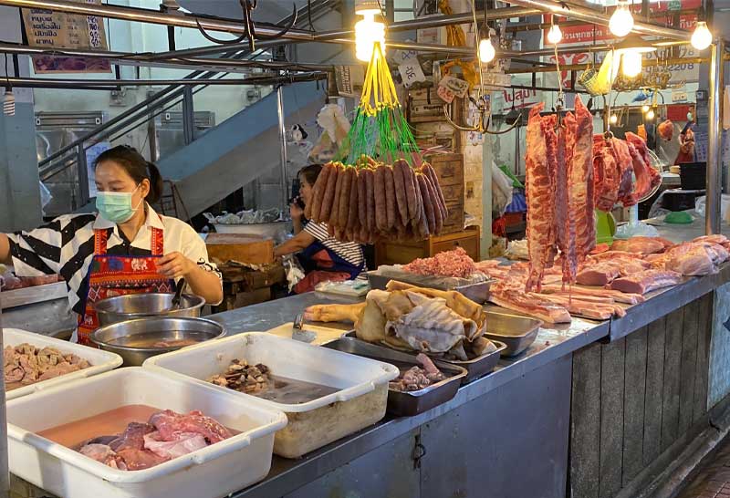 จากการลงพื้นที่ตรวจสอบราคาสินค้าในตลาดสดย่านพรานนก พบว่าราคาสินค้าส่วนใหญ่ยังคงทรงตัวและเป็นไปตามราคาแนะนำของทางกระทรวงพาณิชย์ ยกเว้นราคาเนื้อหมูที่ปรับตัวสูงขึ้นจากเดิมหลังมีโรคระบาดทำให้ราคาหมูเนื้อแดงปรับขึ้นจากกิโลกรัมละ 170-180 บาทเป็นกิโลกรัมละ 220-230 บาทจากการสอบถามพ่อค้าเขียงหมูในตลาด มองว่าราคาของปรับขึ้นแพงมากและยังไม่มีท่าทีปรับลดลง ซึ่งวันนี้ก็ปรับขึ้นอีกกิโลกรัมละ 20 บาท ทำให้คนซื้อลดลงด้วยเช่นกัน ส่วนราคาเนื้อไก่ราคาอยู่ที่กิโลกรัมละ 70-75 บาท