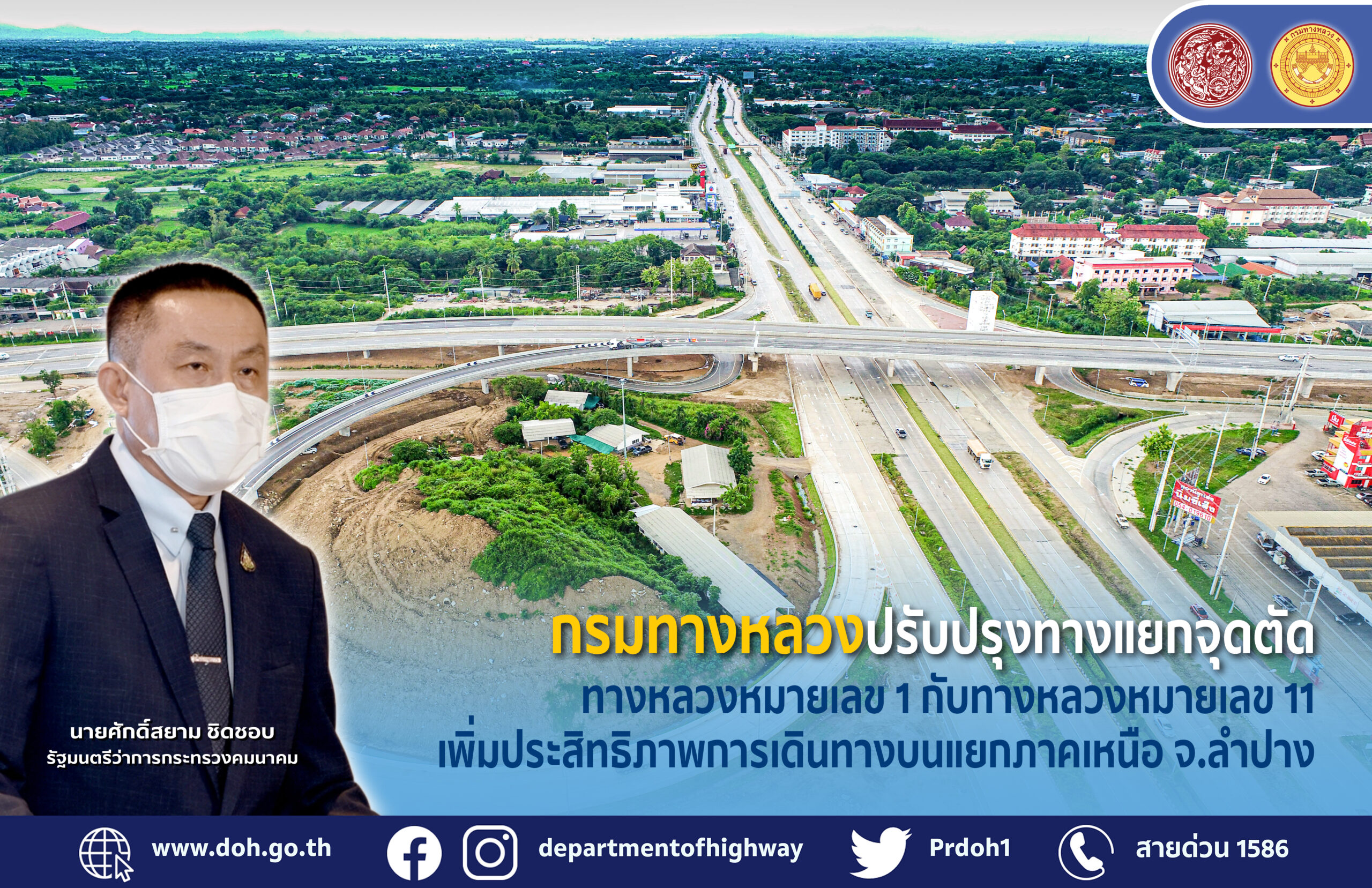 กรมทางหลวง โดย สำนักก่อสร้างสะพาน ได้ดำเนินโครงการฯปรับปรุงทางแยกจุดตัดทางหลวงหมายเลข 1 กับทางหลวงหมายเลข 11 (แยกภาคเหนือ) อ.เมือง จ.ลำปาง ขนาด 1 ช่องจราจร ระยะทางประมาณ 0.8 กิโลเมตร แล้วเสร็จ ตามนโยบายของนายศักดิ์สยาม ชิดชอบ รัฐมนตรีว่าการกระทรวงคมนาคม ที่ต้องการพัฒนาระบบคมนาคมให้มีความสะดวก ปลอดภัย เพื่อคุณภาพชีวิตที่ดีของประชาชน