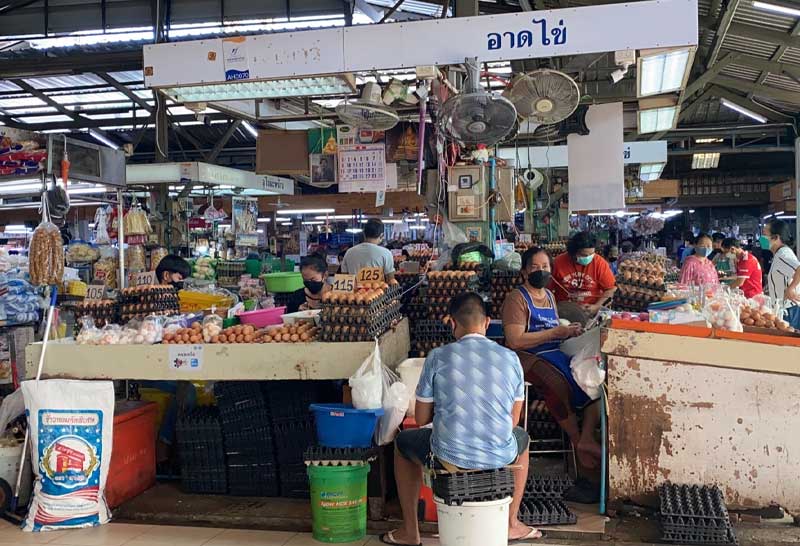 ไข่ไก่ ราคาขายแพงละ 105-125 บาท ตามขนาด ขายปลีก 10 ฟอง 38-42 บาท โดยจากการสอบถามร้านขายไข่ไก่ บอกเป็นเสียงเดียวกันว่า ราคาไข่ไก่คงที่ หลังจากรัฐบาลได้ขอให้ตรึงราคาไข่คละ ที่ 2.90บาท