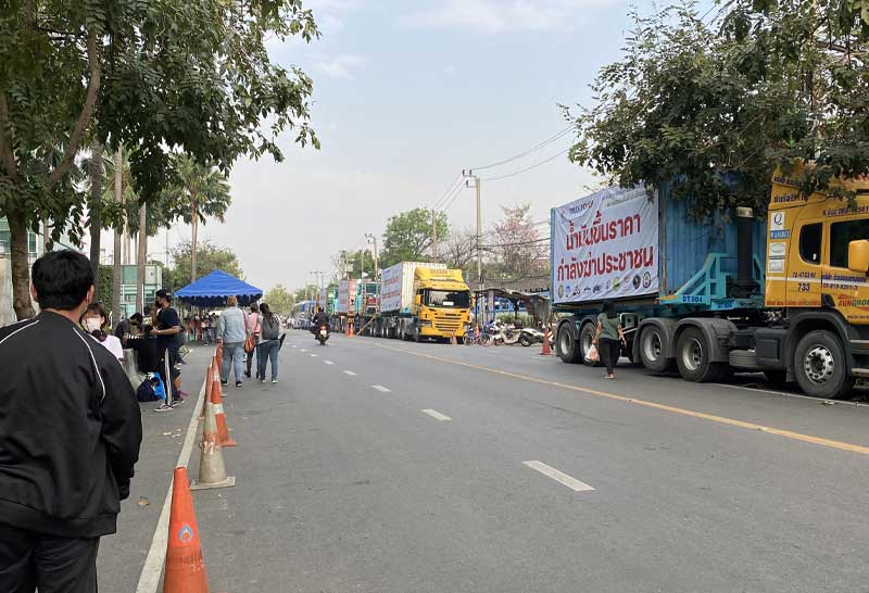 ม็อบรถบรรทุกรวมตัวหน้ากระทรวงพลังงาน เรียกร้องราคาน้ำมันดีเซล 25 บาทต่อลิตร พร้อมขับไล่รัฐมนตรีว่าการกระทรวงพลังงาน