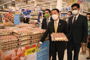 นายบุณยฤทธิ์ กัลยาณมิตร ปลัดกระทรวงพาณิชย์ เปิดเผยว่า ในวันนี้ได้ลงพื้นที่ตรวจสอบสถานการณ์ราคาสินค้า ณ ห้างบิ๊กซี ซูเปอร์เซ็นเตอร์ สาขาสะพานควาย กรุงเทพฯ พบว่า ราคาสินค้าอาหาร โดยเฉพาะหมูเนื้อแดง ได้ปรับลดราคาลงอยู่ที่ กก.ละ 170 บาท ในขณะที่เนื้อไก่ราคาทรงตัว เช่น น่องและน่องติดสะโพก ราคาอยู่ที่ กก.ละ 65 บาท และอกไก่ ราคาอยู่ที่ กก.ละ 75 บาท ซึ่งเป็นไปตามราคาที่กระทรวงพาณิชย์กำกับ น้ำมันปาล์ม ขวดละ 61-62 บาท น้ำมันถั่วเหลือง ขวดละ 55-58 บาท ส่วนสินค้าอุปโภคบริโภคจำเป็นอื่นๆ อาทิ อาหารกระป๋อง บะหมี่กึ่งสำเร็จรูป และซอสปรุงรส ไม่มีการปรับราคาสูงขึ้นและมีปริมาณที่เพียงพอต่อความต้องการของผู้บริโภค