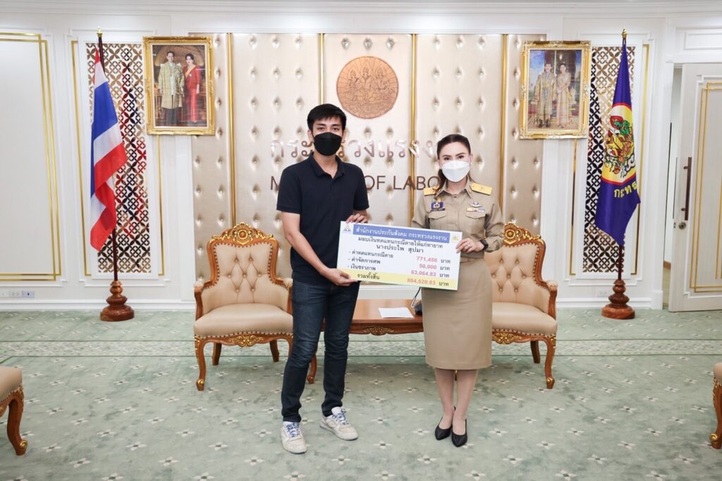 โดย ในวันนี้ กระทรวงแรงงาน โดยสำนักงานประกันสังคม ได้มอบสิทธิประโยชน์เงินทดแทนกรณีเสียชีวิตเนื่องจากการทำงานให้แก่นายจ้าง ทายาทและผู้มีสิทธิ มีสิทธิได้รับเงินทดแทนตามพระราชบัญญัติเงินทดแทน พ.ศ.2537 และเงินบำเหน็จชราภาพกองทุนประกันสังคม แก่ญาติจำนวน 3 ราย ได้แก่