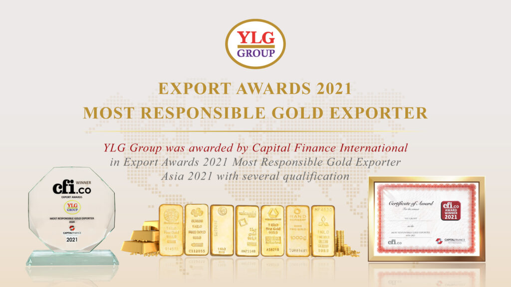 ทั้งนี้ล่าสุด Capital Finance International (Cfi.co) นิตยสารด้านการเงินระดับโลก ได้มอบรางวัล Export Awards 2021 – Most Responsible Gold Exporter – Asia 2021 (รางวัลผู้ส่งออกทองคำที่มีความรับผิดชอบสูงสุด) ให้กับกลุ่มวายแอลจี (YLG Group) โดยทางคณะกรรมการจะคัดเลือกผู้มีคุณสมบัติจากทั่วทุกมุมโลกที่จะต้องผ่านเกณฑ์การแข่งขันที่กำหนดไว้รอบด้าน ซึ่งแบ่งการตัดสิน เป็น 2 รอบ โดย 1 รอบจากผลโหวตที่เปิดโหวตทางหน้าเว็บไซต์ Cfi.co ละอีกรอบหนึ่งจากทีมคณะกรรมการผู้ทรงคุณวุฒิในวงการธุรกิจ และพิจารณาคุณสมบัติครบจาก 11 ด้าน ตามเกณฑ์การคัดเลือก พร้อมทั้งแนวทางการดำเนินธุรกิจที่ไม่หยุดยั้งการพัฒนา และหลังจากได้รับรางวัลในครั้งนี้ YLG จะยังคงมุ่งมั่นในการพัฒนาคุณภาพและการให้บริการต่อไป