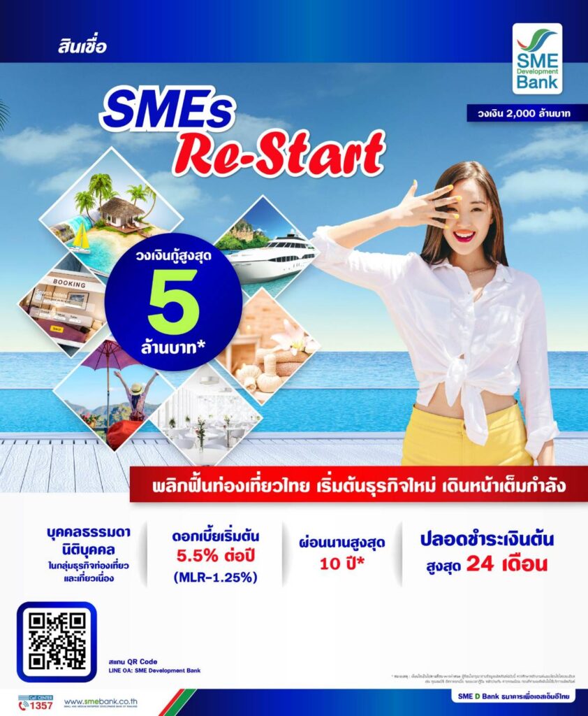 SME D Bank ปลุกเอสเอ็มอีท่องเที่ยวและเกี่ยวเนื่อง ติดเครื่องธุรกิจผุด ‘สินเชื่อ SMEs Re-Start’ คู่โปรแกรมช่วยพัฒนา รับโอกาสท่องเที่ยวฟื้น