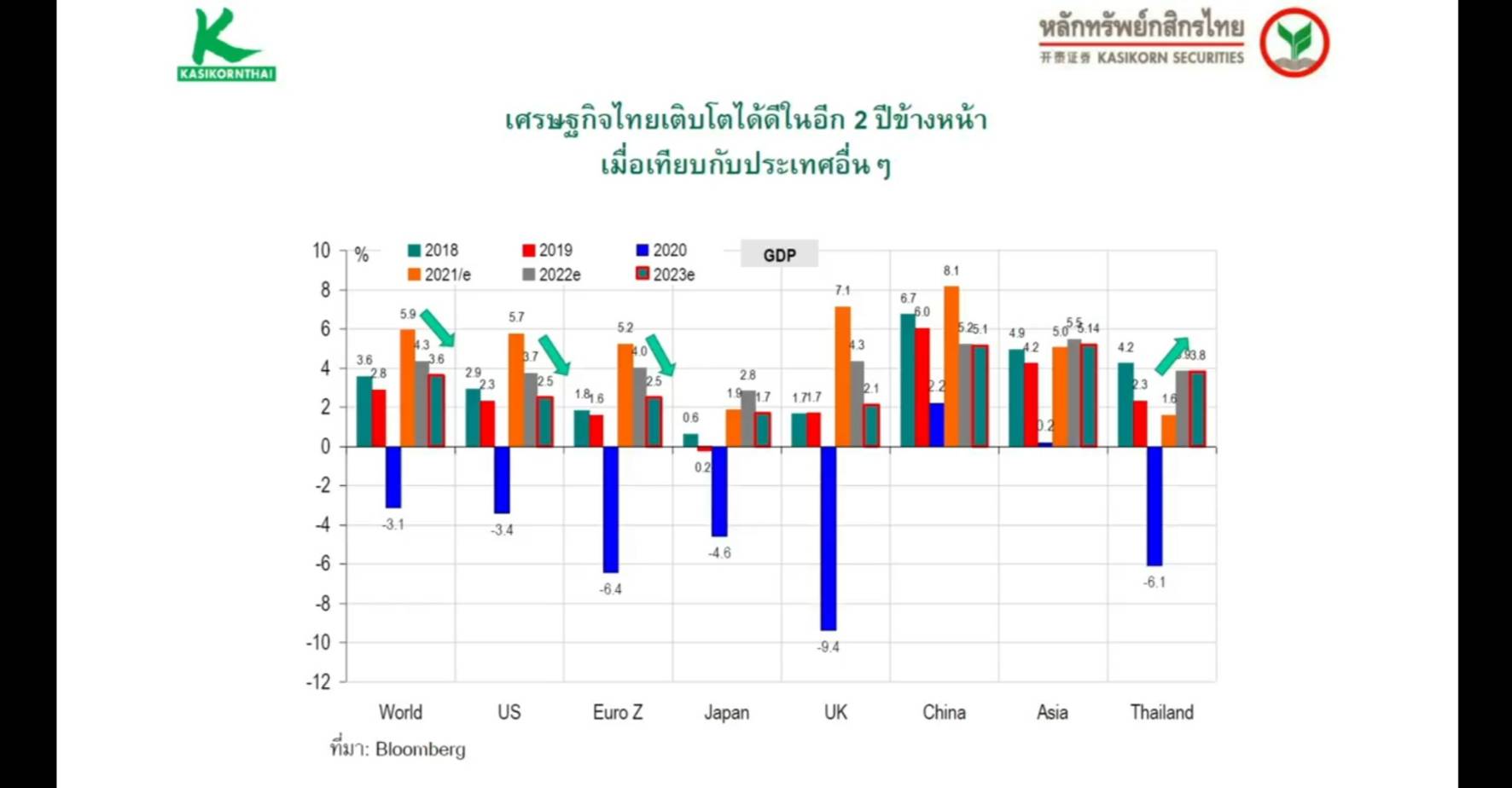 อย่างไรก็ตามการลงทุนในตลาดหุ้นไทย ณ เวลานี้มองว่าหุ้นในกลุ่มที่เกี่ยวข้องกับสินค้าจำเป็น การค้าปลีก สุขภาพ โรงพยาบาล เป็นหุ้นที่มีความเสี่ยงต่ำและน่าลงทุน เนื่องจากการฟื้นตัวของเศรษฐกิจในปีนี้และปีหน้า จะเติบโตได้จากการบริโภคของภาคประชาชน หุ้นที่เกี่ยวกับการบริโภคในประเทศ รวมถึงการท่องเที่ยวยังคงสามารถลงทุนได้