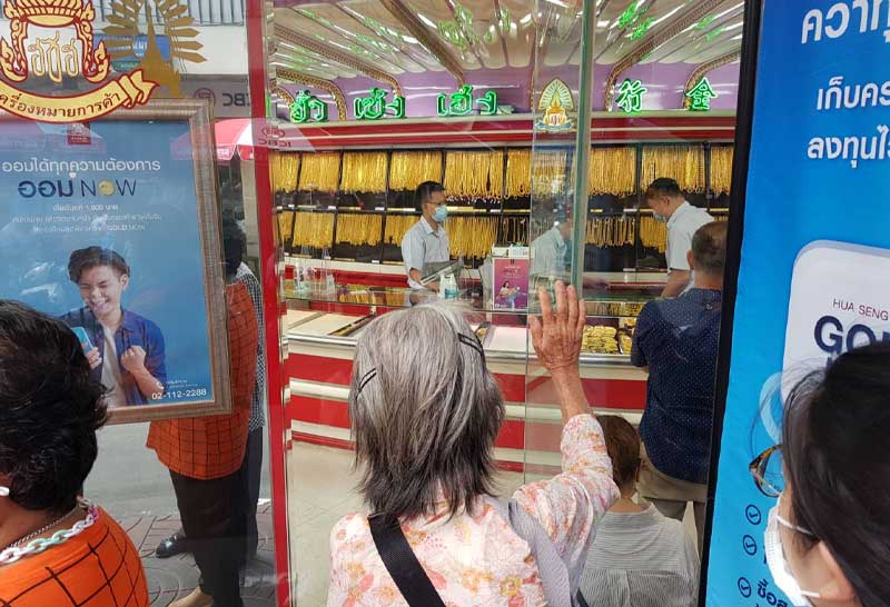 บรรยากาศการซื้อขายทองคำ ที่ถนนเยาวราชในวันนี้ ยังถือว่าคึกคักแม้ราคาทองคำตามประกาศของทางสมาคมค้าทองคำจะลดลงบาทละ 500 บาทก็ตาม เนื่องจากราคาทองคำยังถือว่าอยู่ในระดับสูง ส่งผลทำให้มีประชาชนมาต่อแถวรอขายทองตั้งแต่ในช่วงก่อนเปิดร้าน ในขณะที่ห้างทองต่างๆ แต่ละร้านได้มีการบริหารจัดการ ทองคำซึ่งบางร้านมีการแจกบัตรคิวและต่อแถวรอบริเวณด้านนอกได้ขณะที่บางร้าน มีการจัดระเบียบและเรียกลูกค้าเข้าร้านในจำนวนจำกัด โดยที่เหลือต้องรอด้านนอก ทั้งนี้เพื่อลดความเสี่ยงของการติดเชื้อโควิด-19 โดยผู้ที่เข้ามาภายในห้างทองต่างๆ ต้องสวมใส่หน้ากากอนามัยตลอดเวลา