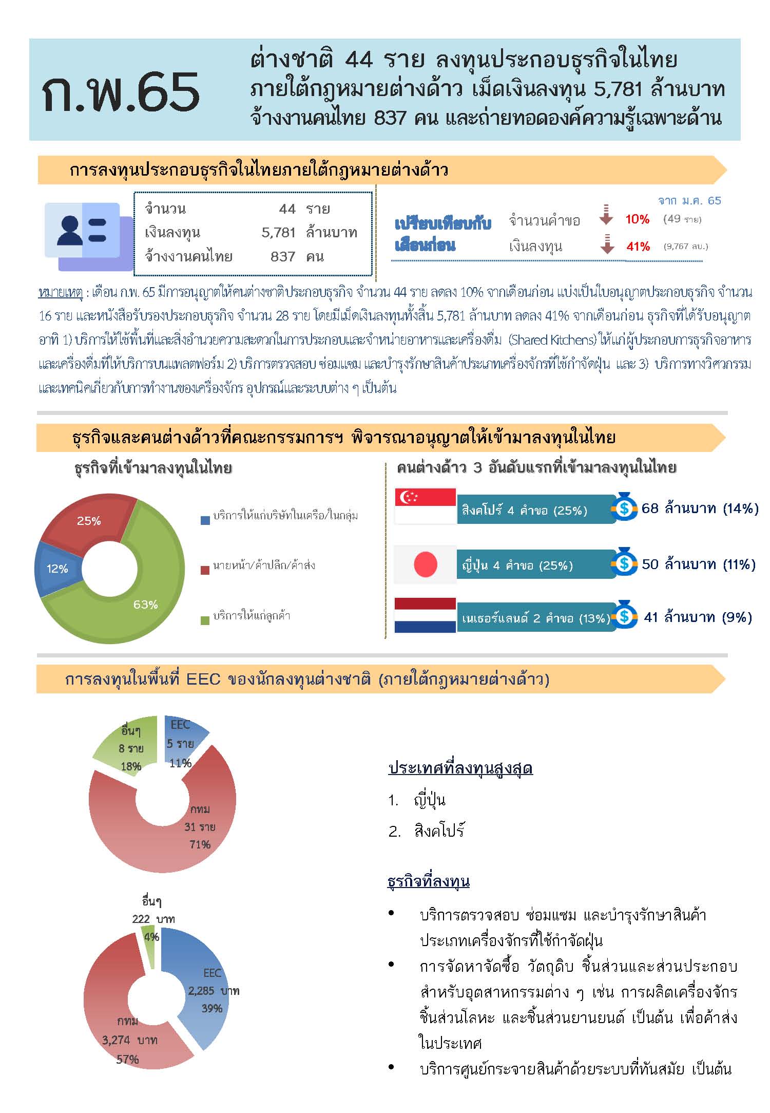 พณ.เผยก.พ. 65 มีต่างชาติลงทุนทำธุรกิจในไทย 44 ราย