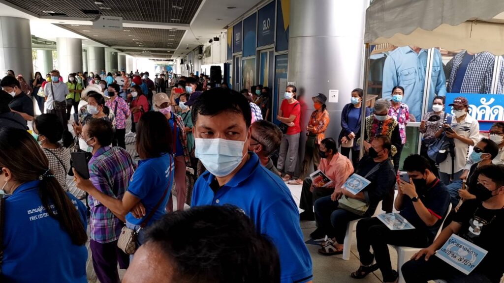 บรรยากาศที่สำนักงานสลากกินแบ่งรัฐบาลสนามบินน้ำ ในช่วงเช้าวันนี้ มีกลุ่มผู้ค้าสลากเสรี ออกมาชุมนุมไม่เห็นด้วย กับการสแกนคิวอาร์โค้ด เพื่อทำการยืนยันว่าเป็นผู้จำหน่ายสลากจริงในราคา 80 บาท ซึ่งผู้ค้าสลากเสรี มองว่าสร้างความยุ่งยาก ไม่เป็นธรรม และกลุ่มตนเองไม่ใช่ต้นเหตุของสลากแพง จึงออกมาชุมนุมเรียกร้องขอคำชี้แจงจากคณะกรรมการบอร์ดสลากในวันนี้ โดยกลุ่มผู้ค้าสลากเสรีมารวมตัวกันและกล่าวหลักการแก้ไขปัญหาสลากเกินราคาที่ไม่เป็นธรรม จนผู้ค้าได้รับความเดือดร้อน พร้อมชูป้ายประท้วงย่อม ๆ ไม่ว่าจะเป็น กำไรไม่กี่บาท ต้องให้ลำบากเติมเน็ต หรือขอขายแบบไม่สแกน