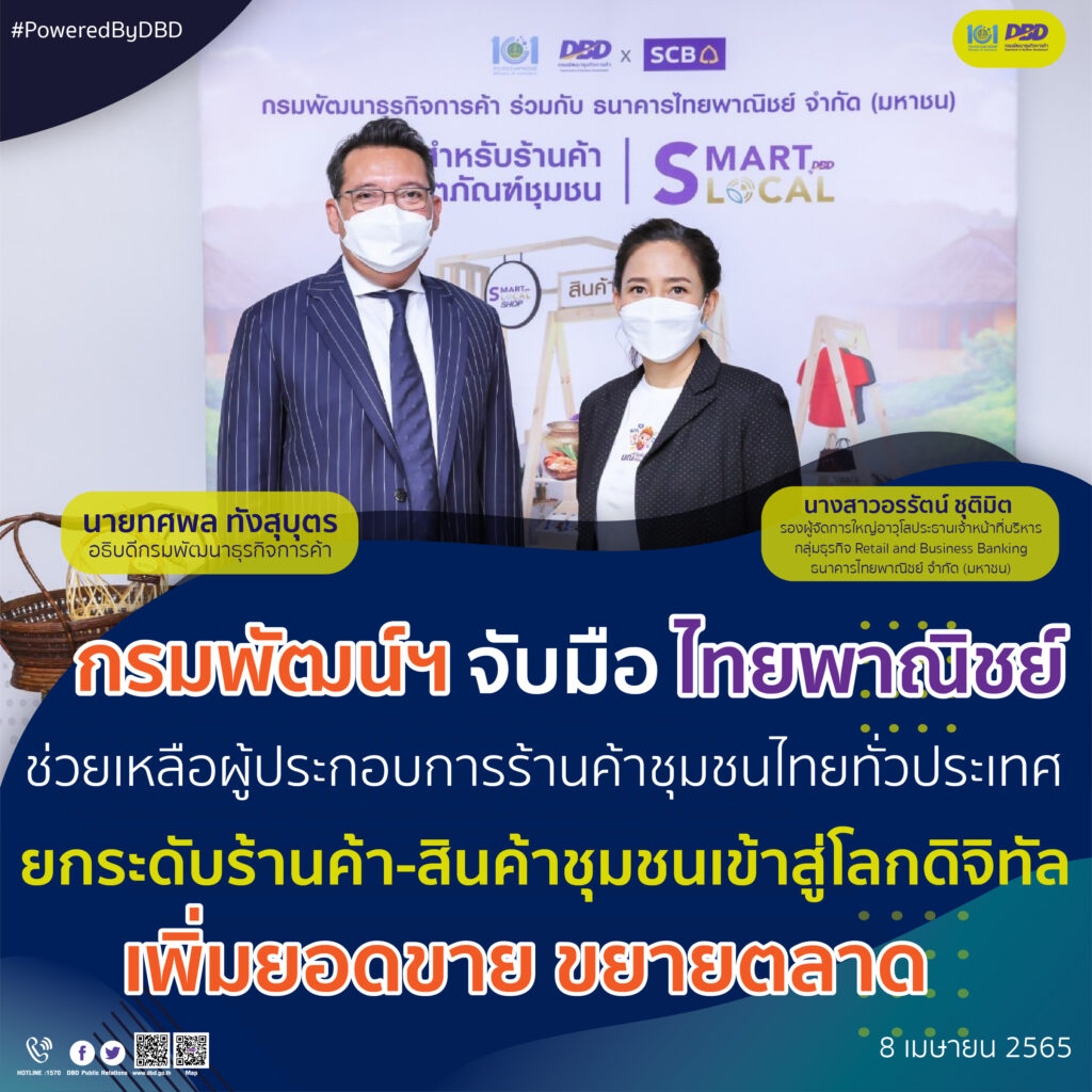 ล่าสุด กรมฯ ได้ร่วมมือกับธนาคารไทยพาณิชย์ยกระดับผู้ประกอบการและสินค้าชุมชนเข้าสู่โลกดิจิทัล ครอบคลุมทั้งร้านค้าชุมชนไทย (Smart Local) ชุมชนอัจฉริยะออนไลน์ (Digital Village by DBD) และ สมาร์ทโชวห่วย โดยการนำเทคโนโลยีดิจิทัลมาปรับใช้ ควบคู่กับผลิตภัณฑ์ทางการเงินและกิจกรรมที่หลากหลายของธนาคารไทยพาณิชย์ที่จะช่วยเพิ่มศักยภาพและขีดความสามารถในการแข่งขันแก่ผู้ประกอบการท้องถิ่นในการประกอบธุรกิจบนโลกออนไลน์