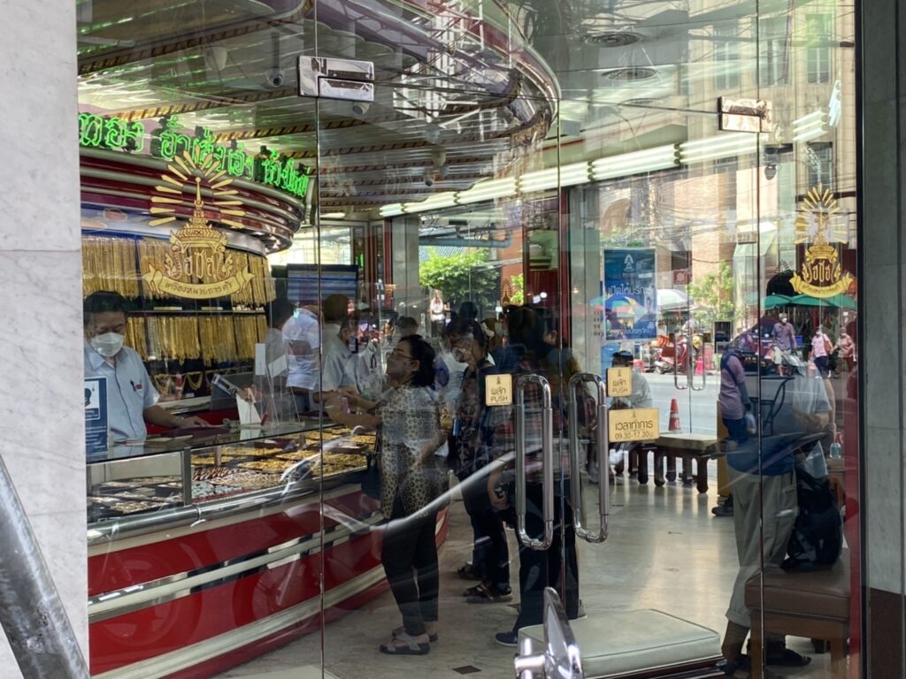ขณะบรรยากาศการซื้อขายทองคำที่ย่านเยาวราชในวันนี้ (24 เม.ย.) ผู้สื่อข่าวรายงานว่า ไม่คึกคักมากนัก เนื่องจากนักลงทุนและประชาชนบางส่วนได้มีการเทขายทองไปแล้วในช่วงที่ราคาพุ่งสูงก่อนหน้านี้ แต่อย่างไรก็ตาม ยังมีลูกค้าเข้ามาใช้บริการตามปกติทั้งการซื้อและขายคืนให้กับทางร้าน
