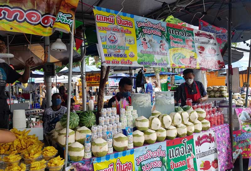 พบว่า ช่วงนี้มีการสั่งสินค้าซึ่งเป็นของที่ระลึก ประเภทเสื้อผ้า เครื่องประดับรวมถึงของใช้ต่างๆ มารอขายมากขึ้น รวมถึงผลไม้และของกินขึ้นชื่อ ไม่ว่าจะเป็น ผัดไทย ต้มยำกุ้งหรือแม้แต่ข้าวเหนียวมะม่วงก็มีจำหน่ายมากขึ้นด้วย ซึ่งทางผู้ประกอบการ ระบุว่า ช่วงนี้ขายดีเป็นพิเศษทำให้ต้องเพิ่มเมนูที่เกี่ยวกับมะม่วงมากขึ้น
