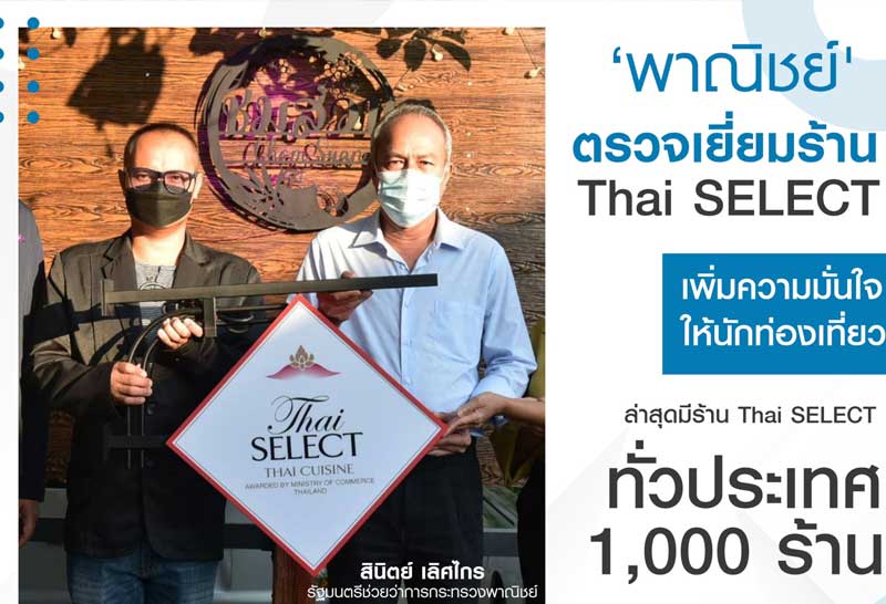รัฐมนตรีช่วยฯ สินิตย์ ตรวจเยี่ยม ร้าน Thai SELECT เพิ่มความมั่นใจให้นักท่องเที่ยว พลิกฟื้นเศรษฐกิจหลังวิกฤตโควิด-19 ล่าสุดมีร้าน Thai SELECT ทั่วประเทศ 1,000 ร้าน