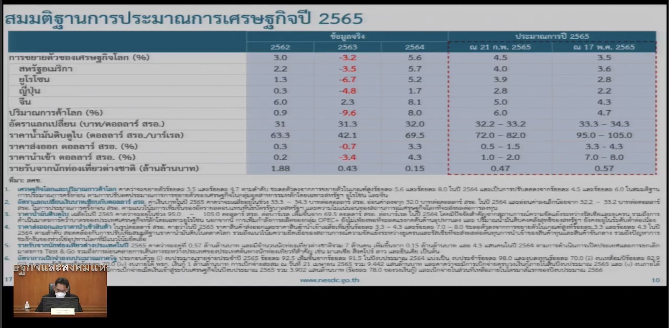 สศช.เผยเศรษฐกิจไทย Q1 ปี 65 โต 2.2% หั่นเป้าทั้งปีเหลือ 2.5-3.5% ส่งออก 7.3% คาดนทท.มาหลังเปิดปท.ปีนี้ 7 ล.คน