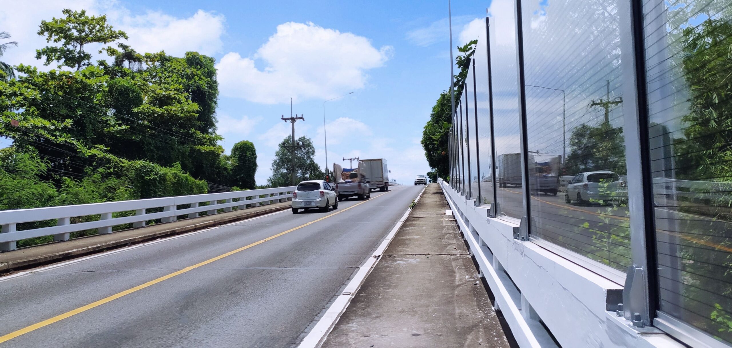 กรมทางหลวงชนบท (ทช.) โดยแขวงทางหลวงชนบทสมุทรสงคราม ดำเนินการปรับปรุงถนนเชิงลาดสะพาน งานบำรุง สาย สส.001 สะพานสมเด็จพระศรีสุริเยนทร์ อำเภออัมพวา จังหวัดสมุทรสงคราม พร้อมติดตั้งกำแพงกันเสียงชนิดโปร่ง ติดตั้งไฟฟ้าแสงสว่างแบบโคมไฟ LED เสร็จสมบูรณ์ ทั้งนี้ เพื่อสนับสนุนยุทธศาสตร์การท่องเที่ยวและการขนส่งในพื้นที่