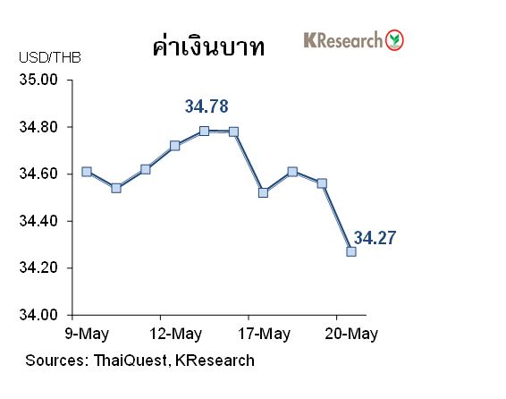 ธนาคารกสิกรไทย มองกรอบการเคลื่อนไหวของเงินบาทสัปดาห์หน้า ระหว่างวันที่ 23-27 พ.ค. จะอยู่ที่ 33.80-34.70 บาทต่อดอลลาร์ฯ หลังจากวันศุกร์ 20 พ.ค. เงินบาทปิดตลาดที่ 34.27 บาทต่อดอลลาร์ฯ เทียบกับระดับ 34.78 บาทต่อดอลลาร์ฯ ในวันศุกร์ก่อนหน้า (13 พ.ค.) ขณะที่ศูนย์วิจัยกสิกรไทยประเมินปัจจัยสำคัญที่ต้องติดตาม ได้แก่ สถานการณ์ยูเครน-รัสเซีย ทิศทางเงินทุนต่างชาติ และตัวเลขเศรษฐกิจสหรัฐฯ ที่สำคัญ