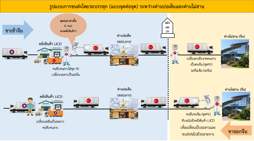 โดยเฉพาะผู้ประกอบการผลไม้ควรควบคุมและป้องกันการปนเปื้อนของเชื้อ Covid-19 ในสินค้าและบนบรรจุภัณฑ์ระดับสูงสุด และจะต้องติดตามสถานการณ์ด่านและเส้นทางการขนส่งอย่างต่อเนื่อง รวมทั้งประสานผู้นำเข้าและบริษัทโลจิสติกส์ให้ชัดเจนก่อนการขนส่งทุกครั้ง เพื่อหลีกเลี่ยงปัญหาที่เกิดจากความไม่แน่นอนของด่านทางบกที่เปลี่ยนแปลงบ่อยครั้งไปตามสถานการณ์การตรวจพบเชื้อโควิด-19 และการบังคับใช้มาตรการต่าง ๆ ของทางการจีน โดยผู้ประกอบการผลไม้ควรมีความยืดหยุ่นและอาจพิจารณาใช้เส้นทางการขนส่งทางอื่นแทนเส้นทางบกด้วย เช่น ทางเรือและทางอากาศ