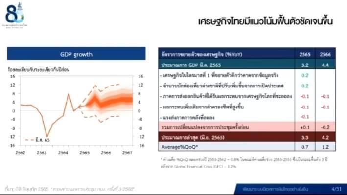 ธปท.มองมาตรการผ่อนคลายของภาครัฐ ส่งผลดีต่อเศรษฐกิจฟื้นตัว คาดโต 3.3% นักท่องเที่ยวเข้าประเทศ 6 ล้านคน ขณะเงินเฟ้อถึงจุดพีคช่วงไตรมาส 3 ก่อนปรับตัวลง