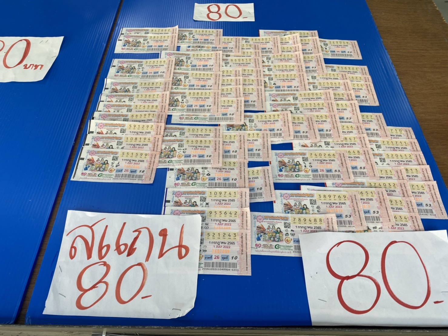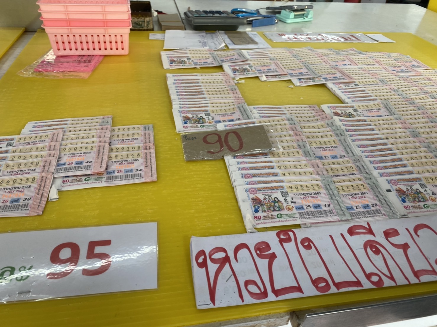 นักเสี่ยงโชคแห่ซื้อเลขเด็ดเลขดัง ครึ่งวันหมดแผง เลขดังแพงสุดใบละ 120 บ. หวยใบ 80-95 บ.