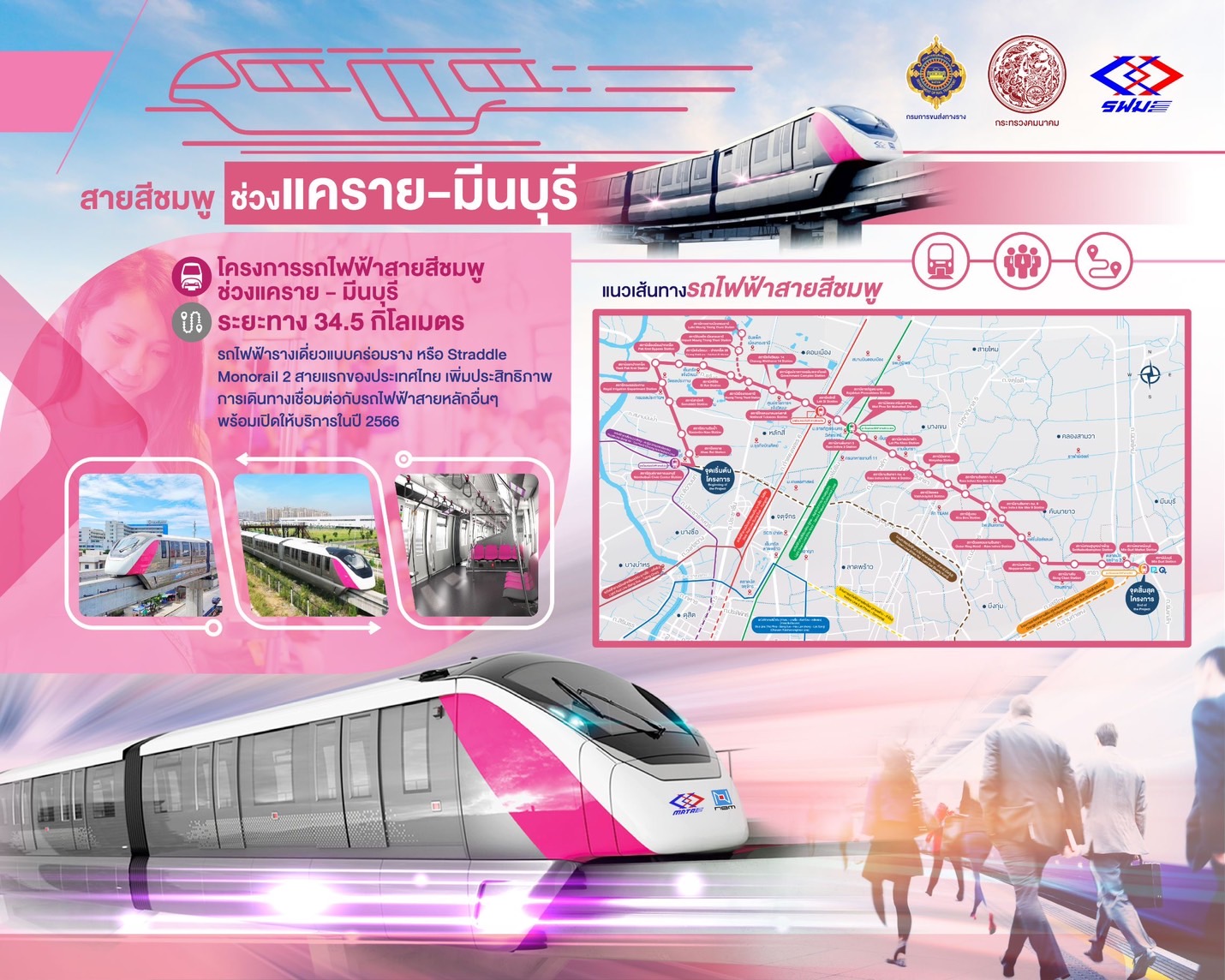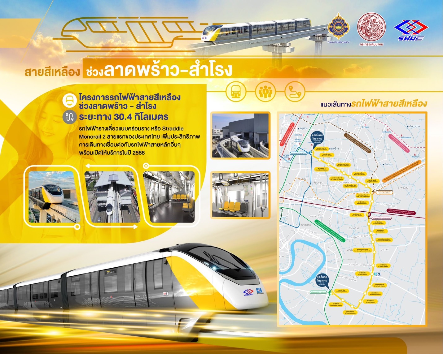 นายศักดิ์สยาม ชิดชอบ รัฐมนตรีว่าการกระทรวงคมนาคม ลงพื้นที่ก่อสร้างโครงการรถไฟฟ้าสายสีเหลือง ช่วงลาดพร้าว-สำโรง และโครงการรถไฟฟ้าสายสีชมพู ช่วงแคราย – มีนบุรี เพื่อติดตามความก้าวหน้าการก่อสร้าง แผนการพัฒนาโครงการฯ ในอนาคต การเชื่อมต่อกับโครงการขนส่งมวลชนอื่น ๆ และความพร้อมของขบวนรถต่าง ๆ รวมถึงแผนการเตรียมเปิดให้บริการเดินรถ