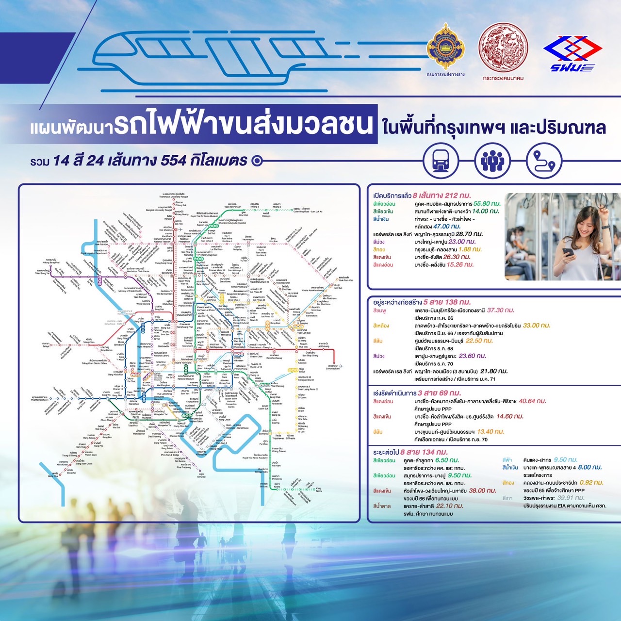 ซึ่งได้มอบนโยบายให้เร่งประสานขอความร่วมมือกับหน่วยงานที่เกี่ยวข้อง เพื่อให้การก่อสร้างเดินหน้าได้อย่างราบรื่นแล้วเสร็จตามกำหนด และดำเนินการคืนพื้นที่โดยเร็วเพื่อบรรเทาปัญหาจราจร ลดผลกระทบต่อการเดินทางของประชาชนให้มากที่สุด พร้อมทั้งให้ความสำคัญกับการออกแบบเพื่อคนทั้งมวล (Universal Design) และการกำหนดอัตราค่าโดยสารที่มีความหมาะสม เป็นธรรม