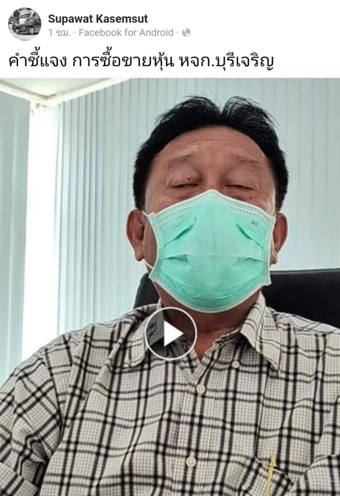 นายศุภวัฒน์ เกษมสุทธิ์ ผู้จัดการห้างหุ้นส่วนจำกัด บุรีเจริญ คอนสตรัคชั่น โพสต์คลิปในเฟซบุ๊กส่วนตัว Supawat Kasemsut ถึงข้อกล่าวหาฝ่ายค้านว่าเป็น นอมินี ของ นายศักดิ์สยาม ชิดชอบ รัฐมนตรีว่าการกระทรวงคมนาคม