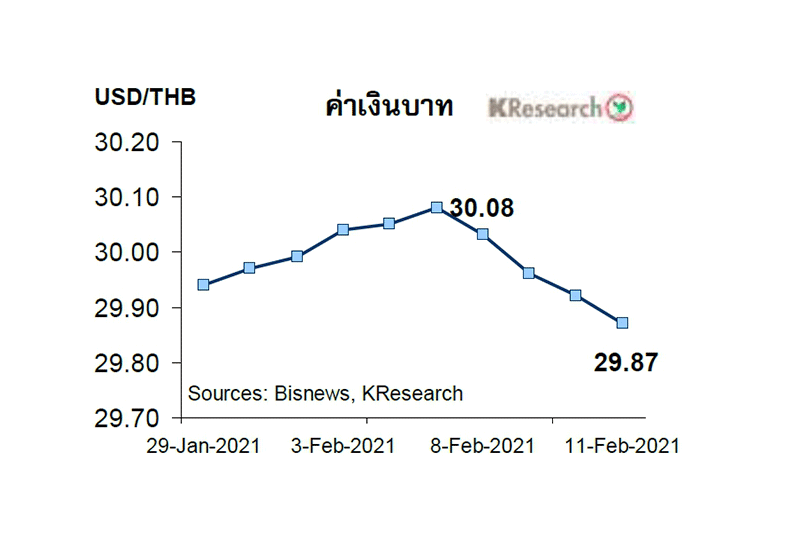โดยในวันพฤหัสบดีที่ 11 ก.พ. เงินบาทอยู่ที่ระดับ 29.87 เทียบกับระดับ 30.08 บาทต่อดอลลาร์ฯ ในวันศุกร์ก่อนหน้า (5 ก.พ.)