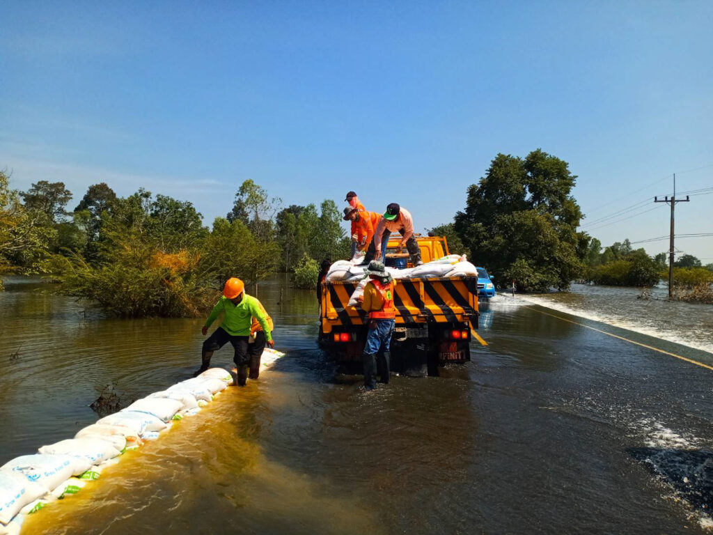 – แขวงทางหลวงศรีสะเกษที่ 1 ดำเนินการกู้สายทางที่ถูกน้ำท่วมบนทางหลวงหมายเลข 2373 ตอน โนนสำนัก – ดอนไม้งาม บริเวณ กม.12+000 – 16+050 จัดนำกำลังเจ้าหน้าที่วางแนวกระสอบทรายเพื่อลดความแรงของกระแสน้ำ และเปลี่ยนทางน้ำให้ไหลเข้าไปตามช่องระบายน้ำเพื่อให้การจราจรผ่านได้โดยเร็ว ขณะนี้เปิดการจราจรแล้ว
