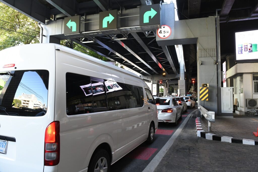 กทพ. จึงนำเทคโนโลยีระบบ Lane control Sign เข้ามาใช้ ในการจัดการจราจร เพื่อเปลี่ยนทิศทางการเลี้ยวของรถบริเวณทางออกตามปริมาณจราจรในแต่ละช่วงเวลา ซึ่งต้องทำควบคู่ไปกับทิศทางการเลี้ยวของการจราจรในถนนระดับดิน และในการแก้ไขปัญหาจราจร บริเวณดังกล่าวนั้น กทพ. ไม่สามารถแก้ไขการจราจรติดขัดในถนนระดับดินได้โดยตรง