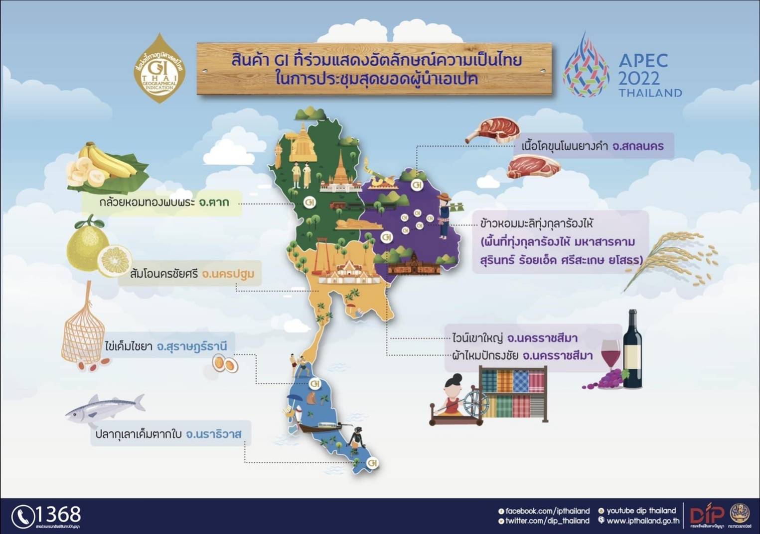 นายวุฒิไกร ลีวีระพันธุ์ อธิบดีกรมทรัพย์สินทางปัญญา กระทรวงพาณิชย์ เปิดเผยว่า การที่ประเทศไทยได้รับเกียรติให้เป็นเจ้าภาพการประชุมเอเปคครั้งนี้ นับเป็นอีกหนึ่งโอกาสสำคัญในการเผยแพร่อัตลักษณ์และคุณภาพของสินค้า GI ไทยให้เป็นที่รู้จักในระดับนานาชาติ โดยเฉพาะผู้นำจาก 21 เขตเศรษฐกิจ