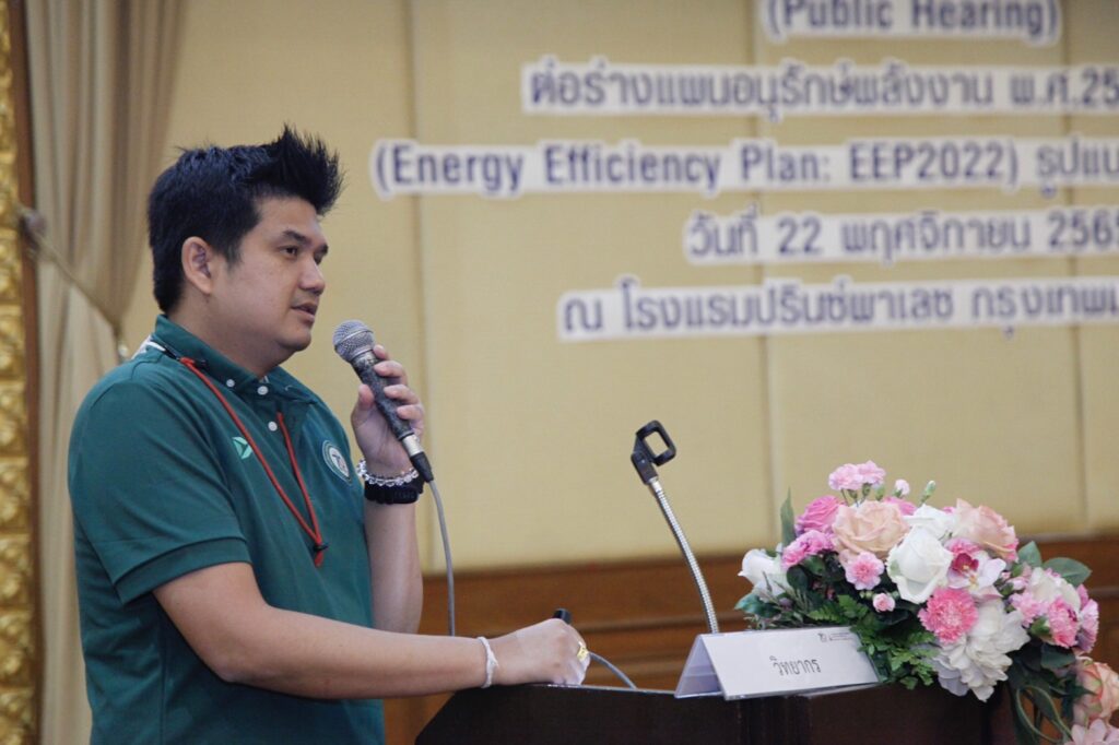 โดยเปิดกว้างให้ทุกภาคส่วนที่เกี่ยวข้อง อาทิ ภาคอุตสาหกรรม ธุรกิจการค้า บ้านอยู่อาศัย เกษตรกรรม ขนส่ง ตลอดจนผู้ที่สนใจได้มีส่วนร่วมในการให้ข้อมูลและแสดงความคิดเห็นต่อร่างแผน EEP2022 ซึ่งเป็นหนึ่งในแผนด้านพลังงานที่สำคัญภายใต้แผนพลังงานชาติ (National Energy Plan 2022)