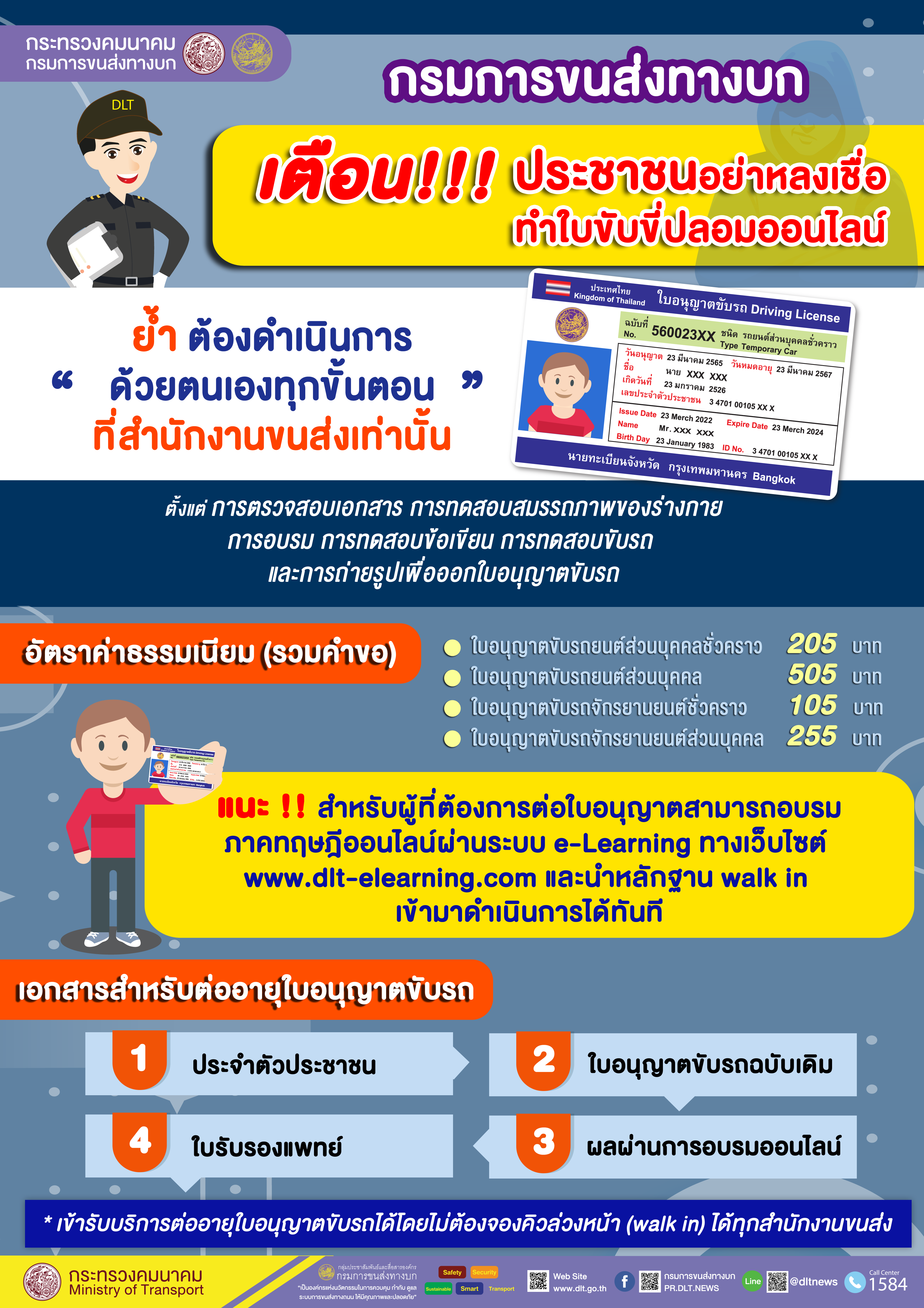 กรมขนส่งฯ เตือนประชาชนอย่าหลงเชื่อทำใบขับขี่ปลอมออนไลน์ ย้ำต้องดำเนินการด้วยตนเองทุกขั้นตอนเท่านั้น