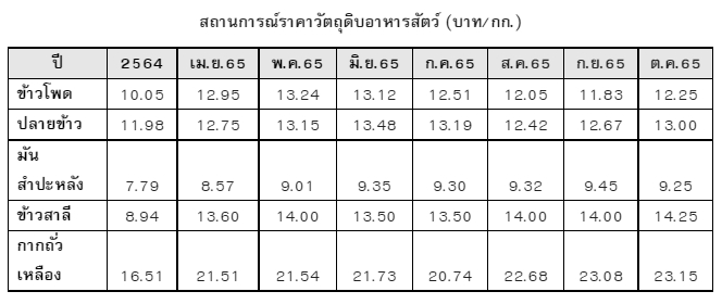ทั้งนี้ สมาคมได้คาดการณ์ว่าราคาวัตถุดิบอาหารสัตว์จะยังคงสูงต่อเนื่องไปอีก 6 เดือนต่อจากนี้ จากสถานการณ์สงครามระหว่างรัสเซีย-ยูเครนที่ยังคงมีความไม่แน่นอน และค่าเงินบาทที่อ่อนตัวลงอย่างมาก ดังนั้นจึงต้องมีหนังสือติดตามความคืบหน้าไปอีกฉบับเมื่อวันที่ 10 พฤศจิกายนที่ผ่านมา ดังนั้นขณะนี้สิ่งที่รัฐบาลต้องทำแบบเร่งด่วนที่สุด คือ การอนุมัติปรับราคาจำหน่ายอาหารสัตว์ (Price list) ให้สอดคล้องกับต้นทุนที่สูงขึ้นในทันที เช่นเดียวกับที่ทำให้กับบะหมี่กึ่งสำเร็จรูป และต้องทำควบคู่ไปกับการปรับลดภาษีนำเข้าวัตถุดิบอาหารสัตว์เพื่อลดต้นทุนให้กับผู้ประกอบการอีกทางหนึ่งด้วย
