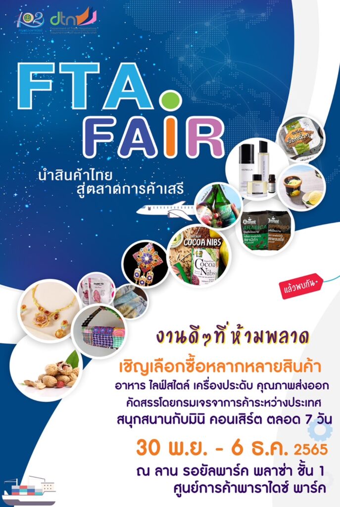 กรมเจรจาฯ จัดงาน”FTA Fair” ชวนซื้อสินค้า,ให้ความรู้เกษตรกร 30พย.-6ธค. ที่ ศูนย์การค้าพาราไดซ์ พาร์ค กรุงเทพฯ