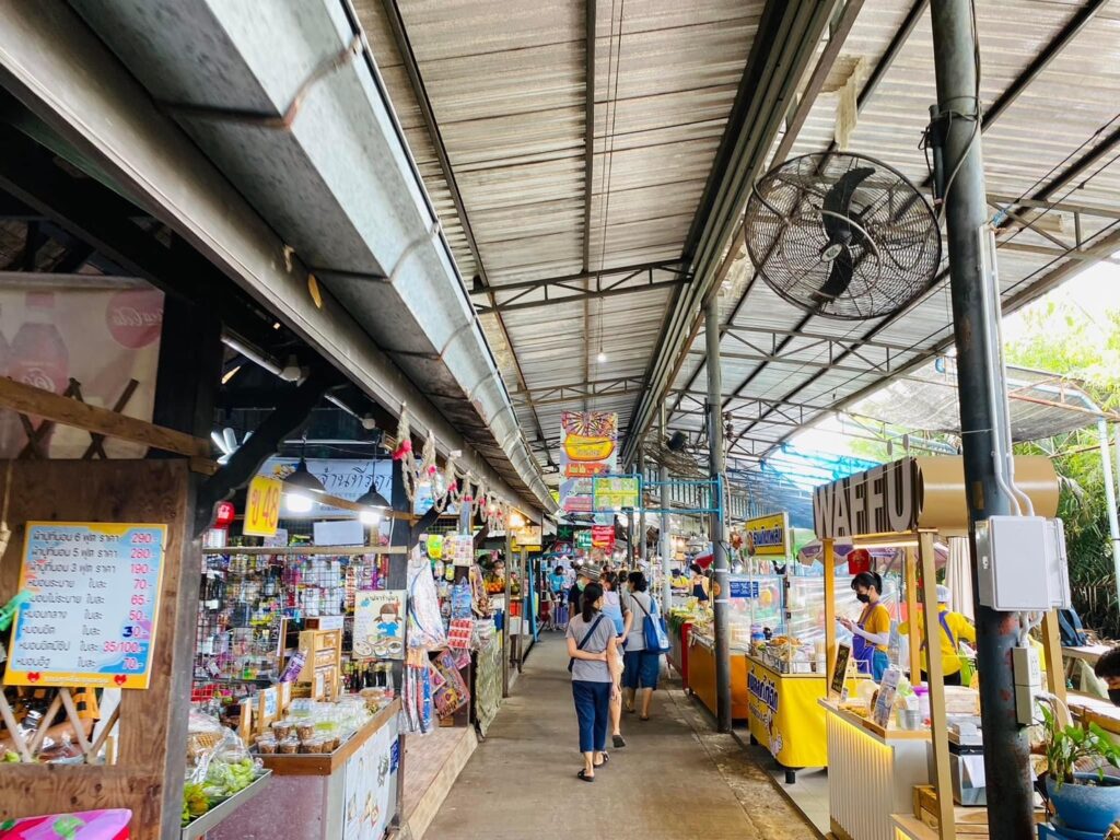 ทั้งนี้ภายใน ตลาดมีร้านค้ามากมาย ขายอาหารพื้นบ้านทั้งคาวหวาน และสินค้าโอทอปจากคนในชุมชนบางน้ำผึ้ง และตำบลใกล้เคียงในจังหวัดสมุทรปราการ ตลาดจะมีเฉพาะวันเสาร์และวันอาทิตย์ วันหยุดนักขัตฤกษ์ ซึ่งตลาดจะเริ่มเปิดบริการ 08.00 น.-16.00 น.