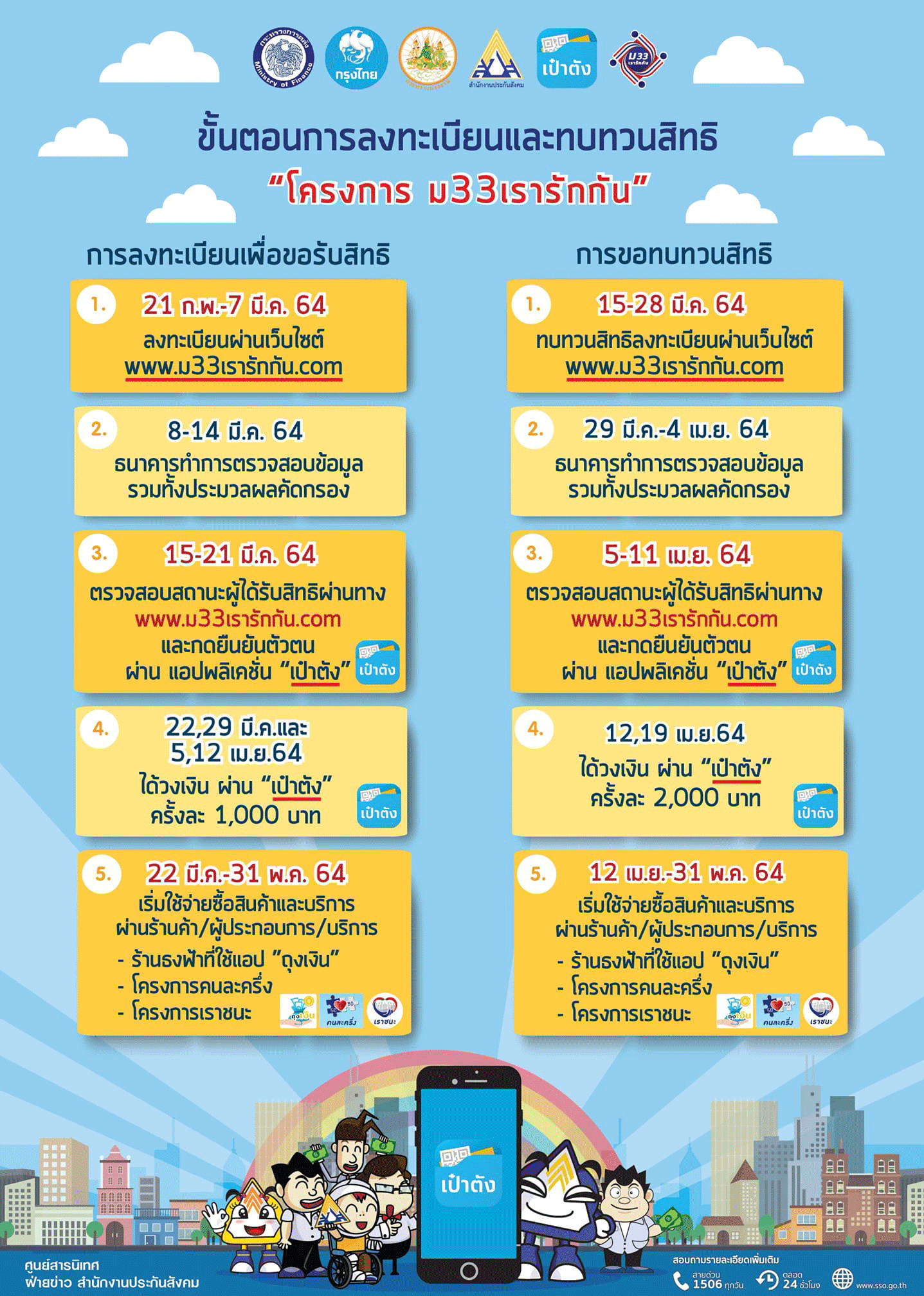 ทั้งนี้ผู้ประกันตนสามารถลงทะเบียนผ่านเว็บไซต์ www.ม33เรารักกัน.com ตั้งแต่วันที่ 21 ก.พ.- 7 มี.ค. 64 เวลา 06.00-23.00 น.
