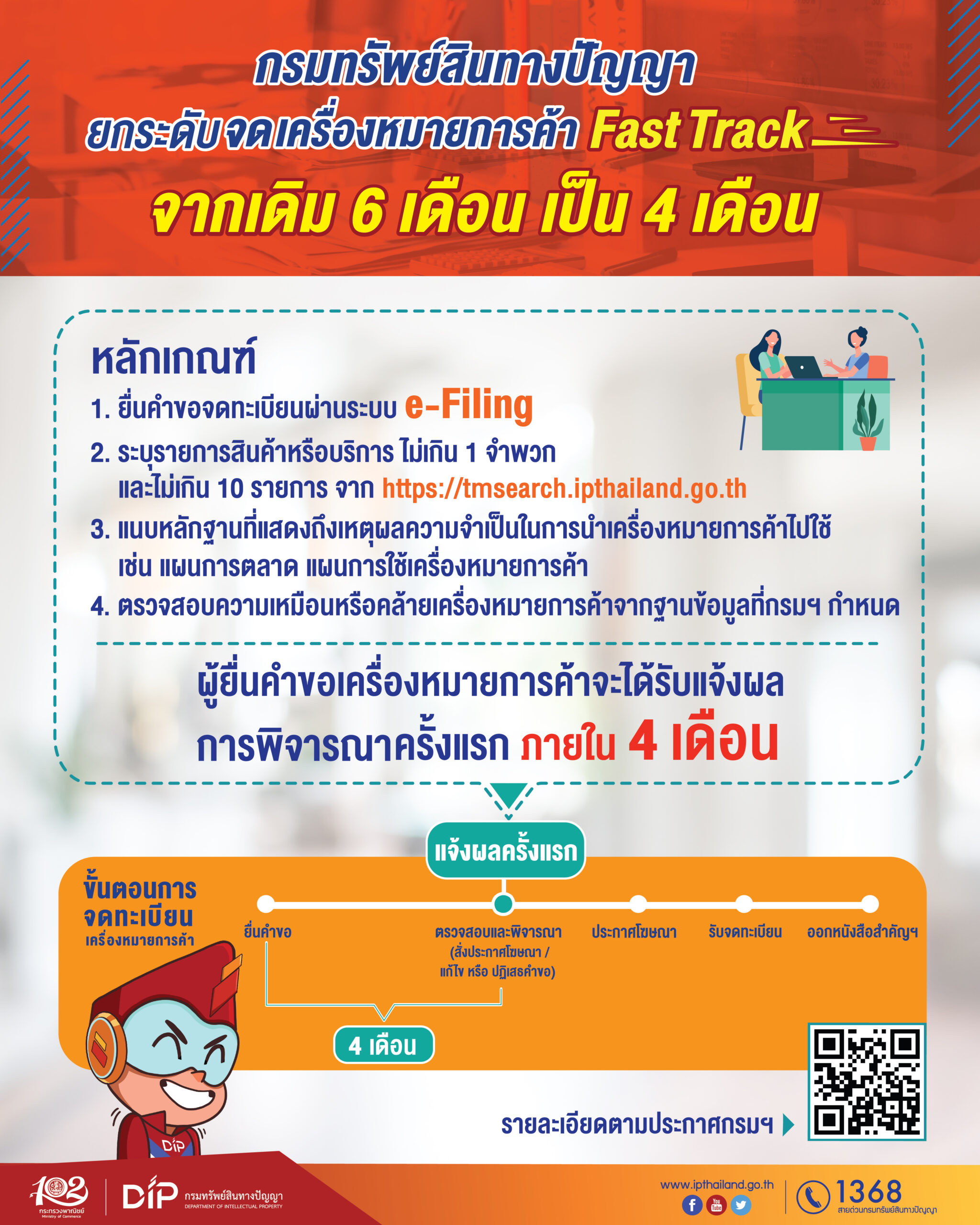 ซึ่งบริการจดทะเบียนเครื่องหมายการค้าแบบเร่งด่วน จะช่วยอำนวยความสะดวกแก่ผู้ยื่นคำขอจดทะเบียนที่มีความจำเป็นต้องใช้เครื่องหมายการค้าอย่างเร่งด่วน ช่วยลดระยะเวลาดำเนินการและลดภาระของผู้ประกอบการ เพิ่มโอกาสทางการค้า สร้างแต้มต่อทางธุรกิจได้