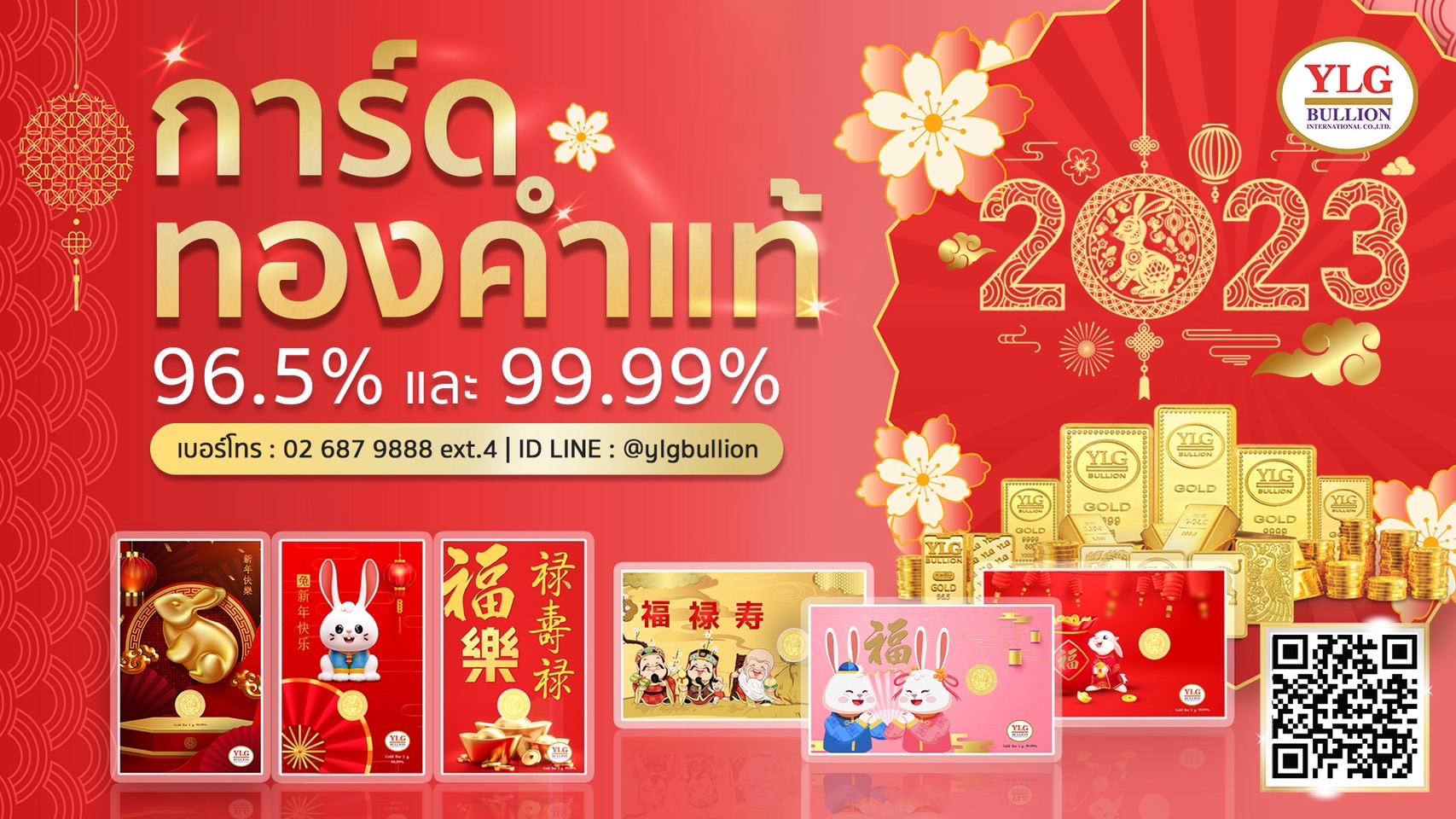 นอกจากนี้ในโอกาสต้อนรับเทศกาลตรุษจีนปีนี้ YLG ได้ออกผลิตภัณฑ์การ์ดทองคำคอลเล็กชันมงคลลวดลายใหม่ไว้ให้เลือกเป็นของขวัญ ทั้ง 6 รูปแบบ ประกอบด้วย การ์ดทองคำลายอักษรจีนมงคล ลายฮกลกซิ่ว และลายกระต่ายมงคล โดยบนการ์ดจะออกแบบด้วยลวดลายสวยงาม บรรจุทองคำแท่ง 96.5% และ 99.99% มีให้เลือกทั้งในรูปแบบทองคำแท่ง และเหรียญทองคำ น้ำหนักตั้งแต่ 0.5 กรัม และ 1 กรัม ด้วยลวดลายมงคลหลากหลายรูปแบบ เพื่อให้ผู้ที่สนใจสามารถเลือกซื้อเป็นของขวัญช่วงเทศกาลตรุษจีนในขนาดและราคาที่เข้าถึงได้ง่ายขึ้น