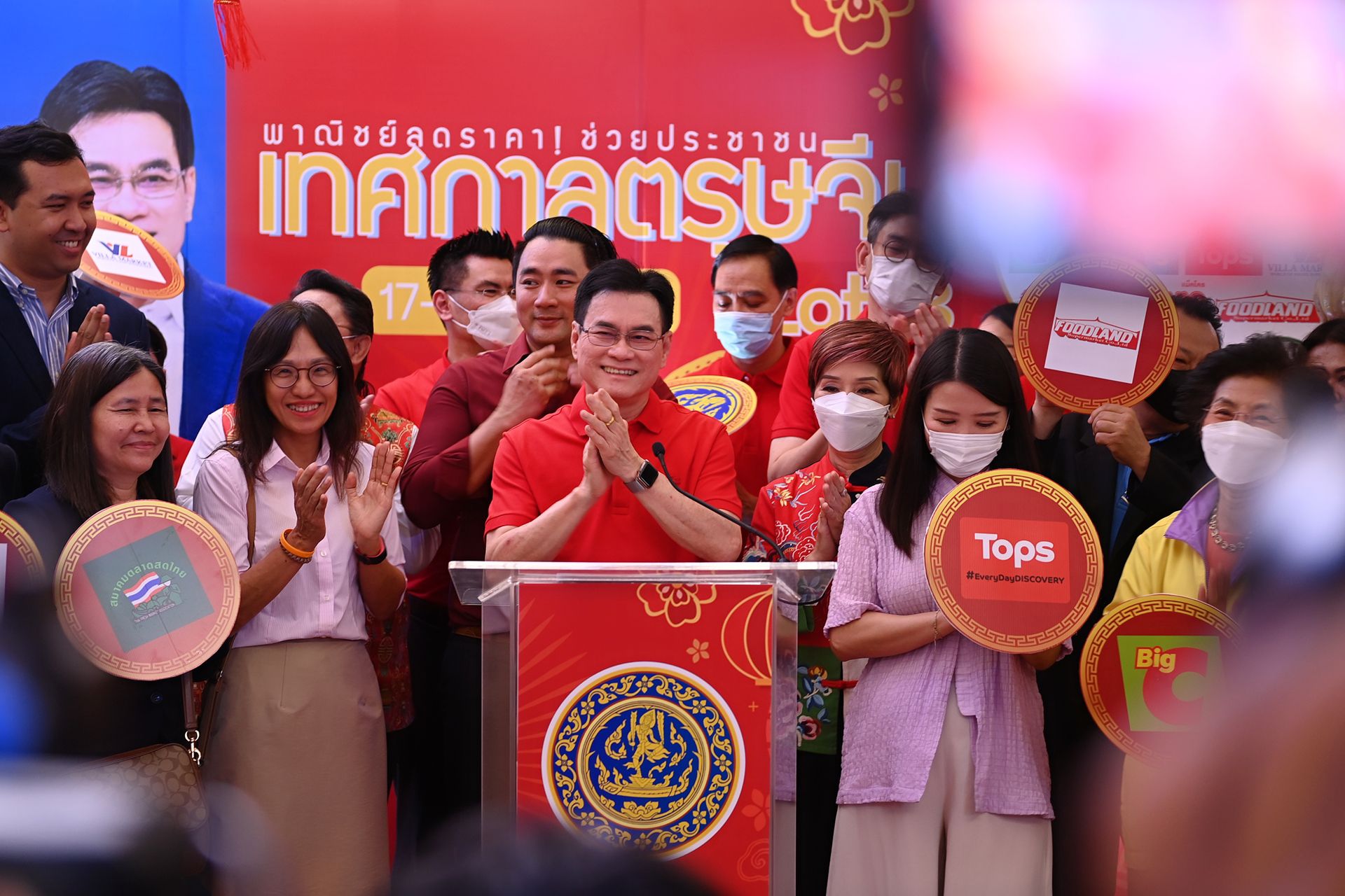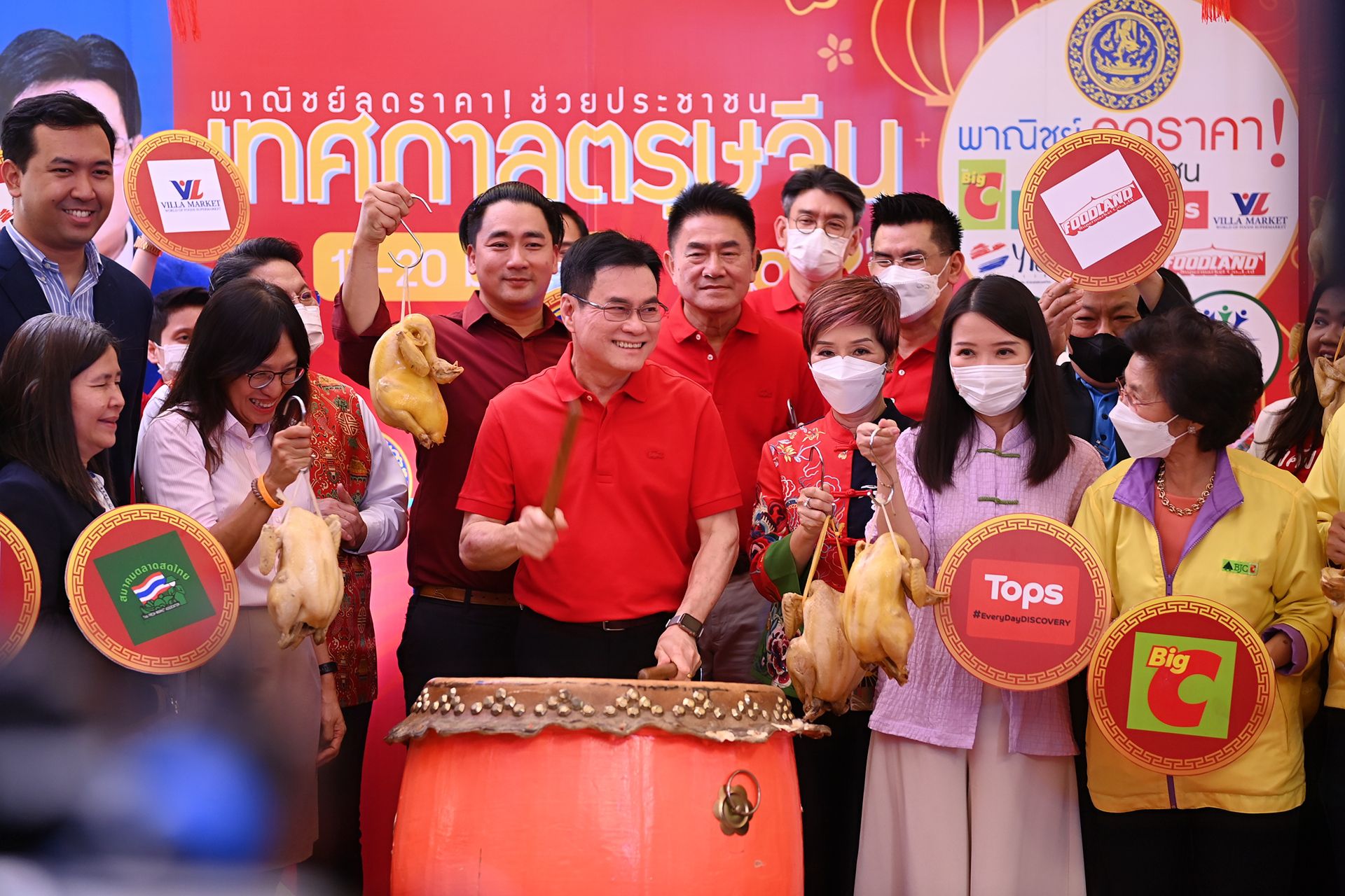 นายจุรินทร์ ลักษณวิศิษฏ์ รองนายกรัฐมนตรีและรัฐมนตรีว่าการกระทรวงพาณิชย์ Kick Off โครงการ “พาณิชย์ลดราคาช่วยประชาชน เทศกาลตรุษจีน ปีกระต่าย” (Lot 23) กรุงเทพมหานคร ซึ่งกระทรวงพาณิชย์โดยกรมการค้าภายในร่วมกับผู้ประกอบการ ห้างค้าปลีก-ค้าส่ง ห้างท้องถิ่น ตลาดสดและตลาดกลางทั่วประเทศ เปิดจุดจำหน่ายสินค้าตรุษจีนราคาถูก 4,600 จุด กระจายทั่วประเทศตั้งแต่ 17-20 ม.ค. 66 จำนวน 4 วัน ในช่วงเทศกาลตรุษจีน